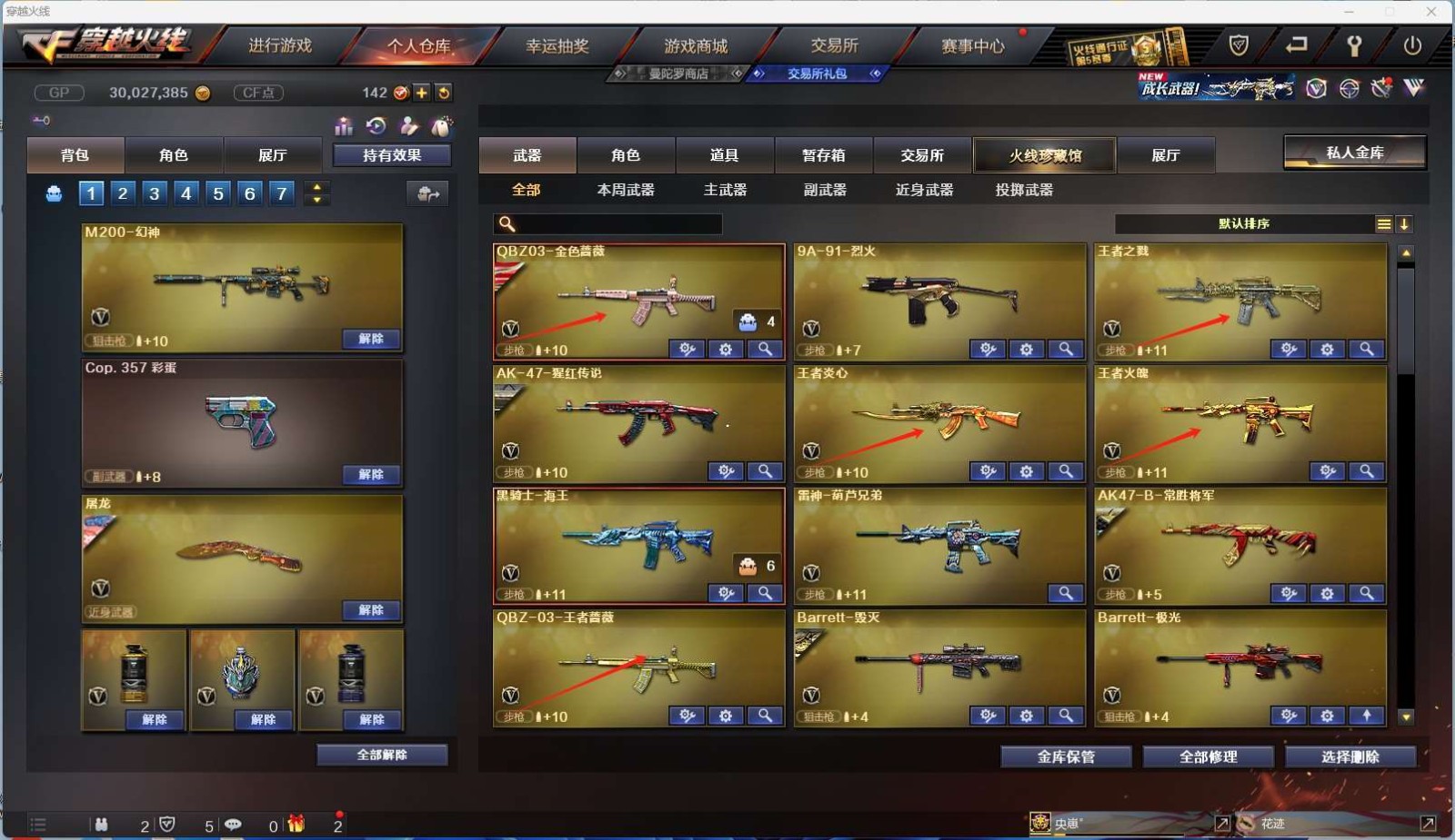 【m200幻神+幻神音效卡】【qbz03金色蔷薇+金色蔷薇音效卡+ags19冠军皮肤+呛娘阿敏皮肤】【雷神+雷神音效卡】【qbz03云龙 qbz03天罚】【王者蔷薇 王者炎心 王者火魄 王者之戮】【火麒麟 黑龙 雷神 黑骑士 天启 黑鲨 无影神兵利器 黑武士锦绣游龙 超新星热带奇洋 烈火 猩红传说 黑骑士海王 雷神葫芦兄弟 长胜将军 毁灭 极光 裁决 暗月传说 炼狱 烈龙 雷霆】——【沙鹰修罗*5 天神动感闪耀 屠龙 龙啸 擎天 屠龙动感闪耀 擎天云海游龙 龙啸热带奇洋 龙啸烈火龙威】【云龙投掷套装】——【角色】【4防王者春 暗夜审判】【王者凌霄】【葵 樱】【奇洋探员 乔伊教练 云海玲珑】;QBZ03-金色蔷薇,M200-幻神,Kar98K-星神,