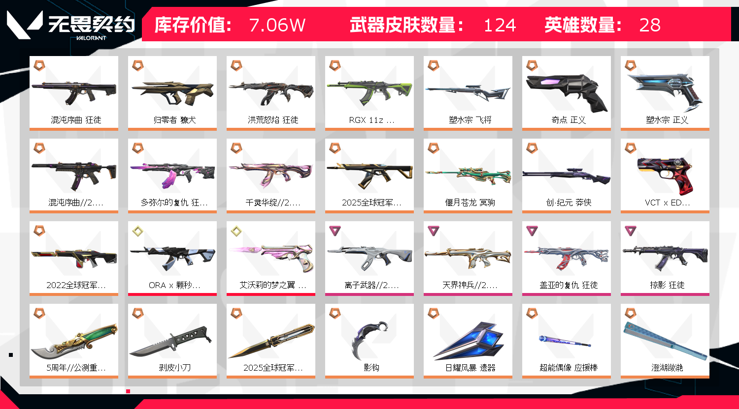 首页 > 租号大厅 > 无畏契约-wegame > wegame/wegame > 秒解🈲炸鱼千寻华绽2.0颗秒军刀狂徒2522冠军苍龙+多弥儿显卡混沌掠夺14狂徒掠夺爪剥皮15刀皮