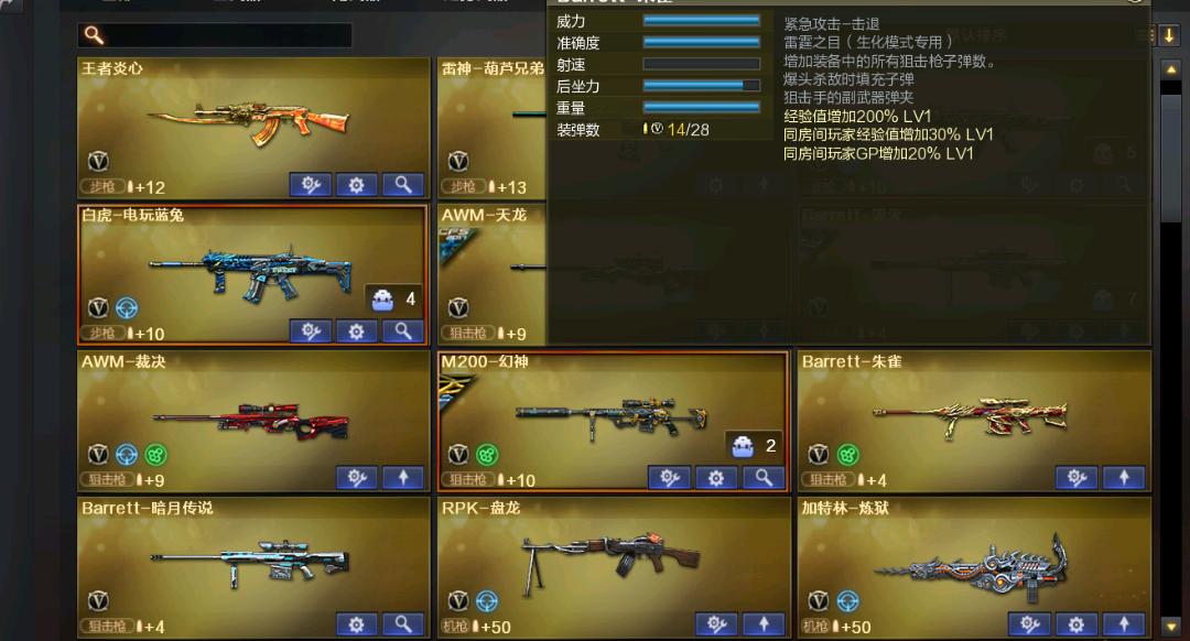 超值幻神周瑜王者炎心黑骑S4冠军典藏冠军啸传奇70kg火麒麟传奇王者零国色天香王者白虎雷神葫芦兄弟朱雀cop堕天神雷霆王者;RPK-盘龙,QBZ03-金色蔷薇,M200-幻神,