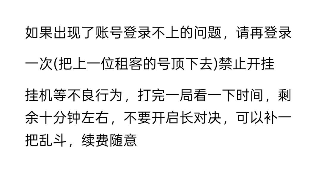 • 租号限制:起租时间2小时,租号0次及以上才可租用此号