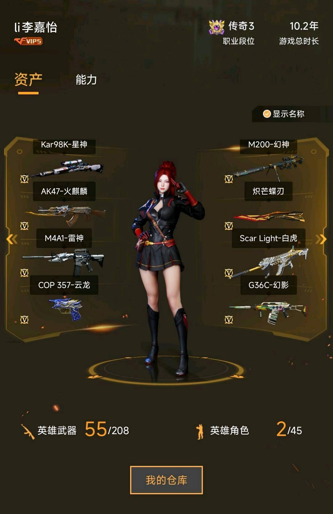 号主很懒什么都莫得留下。。。;炽芒蝶刃,传说星骇,QBZ03-金色蔷薇,G36C-幻影,M200-幻神,Scar Light-白虎,Kar98K-星神,
