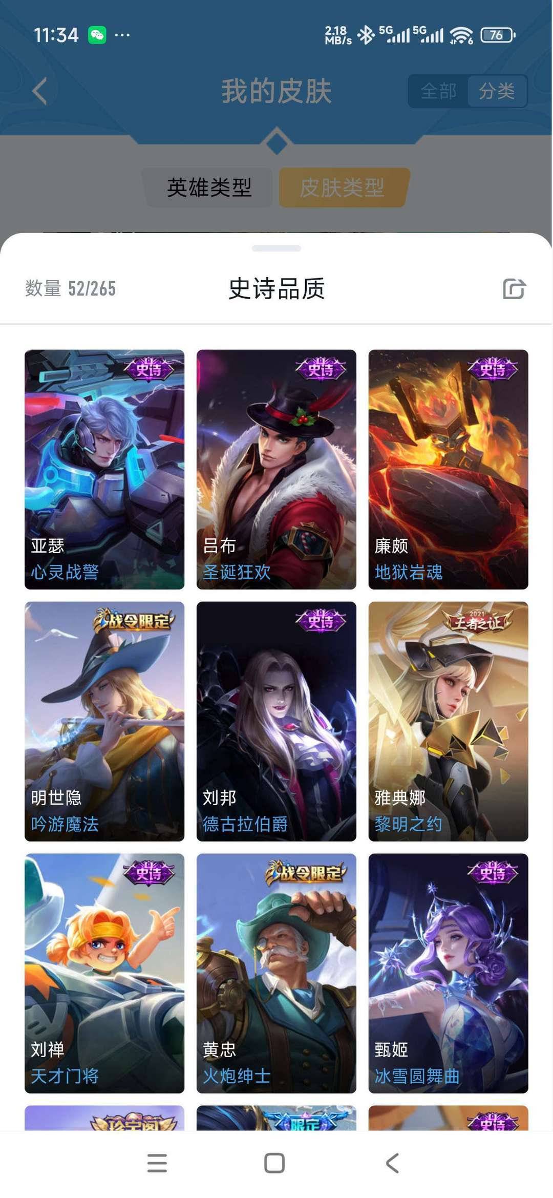 v10、12水555皮、死亡执政官、刘备星传说时之思念、小兵皮肤大耳狗甜茶、瑶无双真我赫兹、愿照·九州拓、怪盗基德、画中仙、至尊宝、凤求凰、神威、天魔缭乱