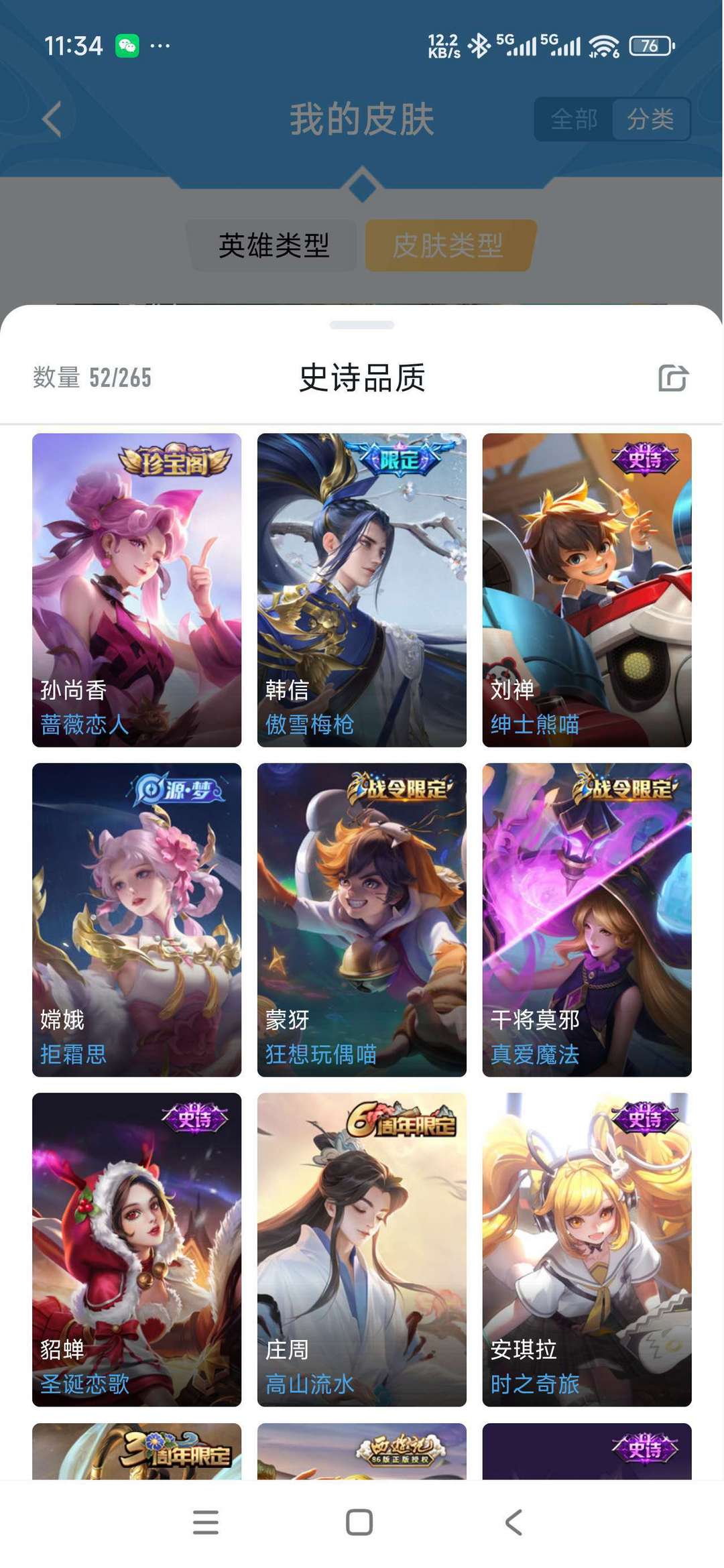 v10、524皮5水4无双、遇见神鼓、齐天大圣、白虎志、韩信荣耀典藏、72传说、愿照·九州拓、时之魔女、瑶无双、青丘、九尾、神器明辉仪