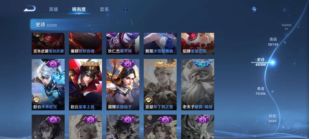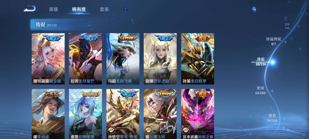 v10、537皮6水4无双、安琪拉-颠倒童话·魔镜、朵莉亚-神骥、遇见神鼓、齐天大圣、白虎志、韩信荣耀典藏、73传说、时之魔女、瑶无双、青丘、九尾、神器明辉仪