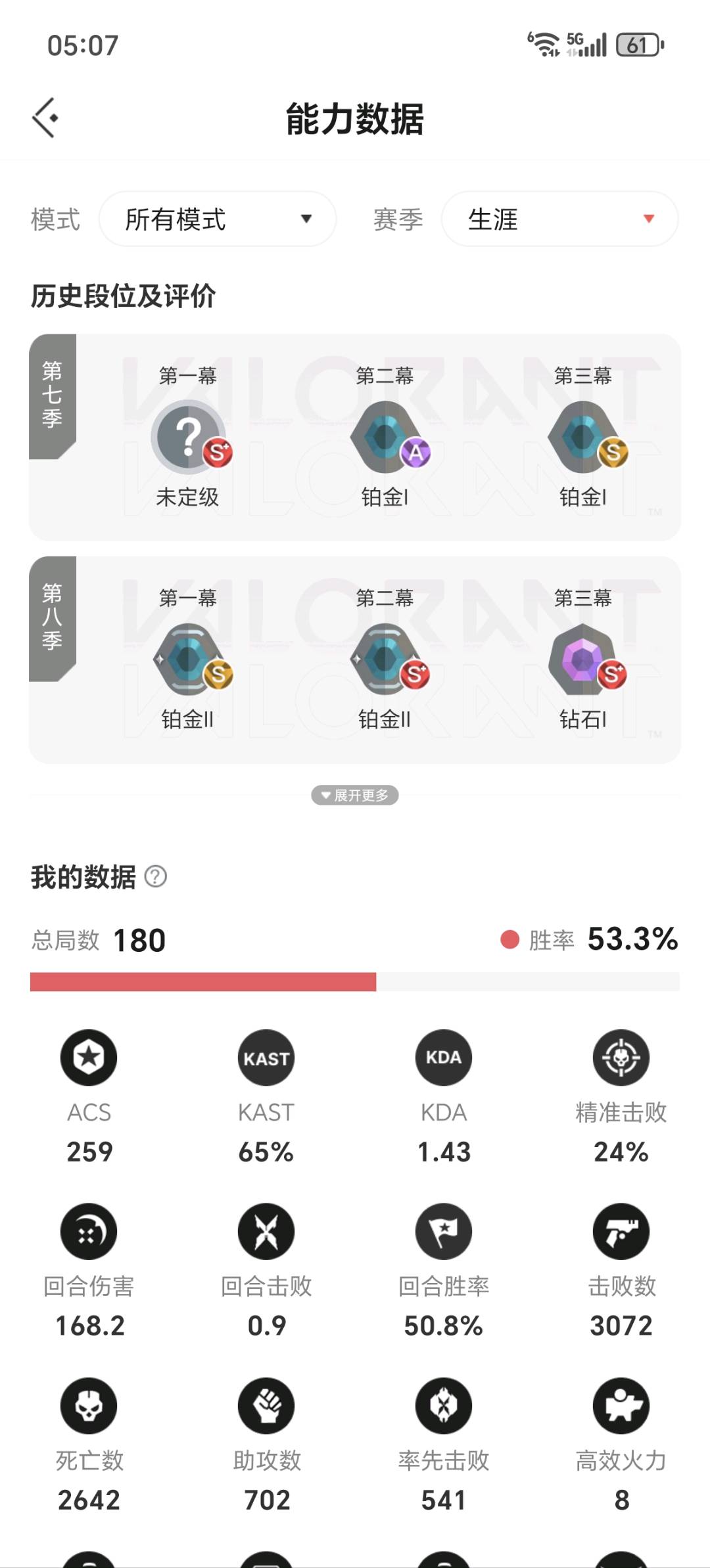 • 无畏段位: 当前赛季无