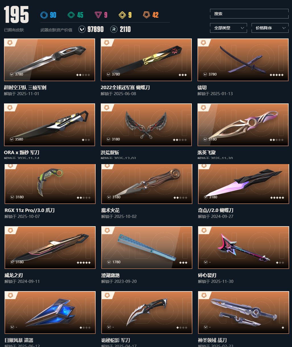 • 皮肤资产价值: 97890