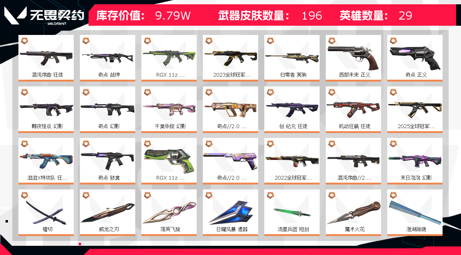 首页 > 租号大厅 > 无畏契约-wegame > wegame/wegame > 秒解10W三棱军刺❤️颗秒套❤️222325冠军套猫猫显卡创纪元混沌狂徒奇点套莲花古神末日幻影