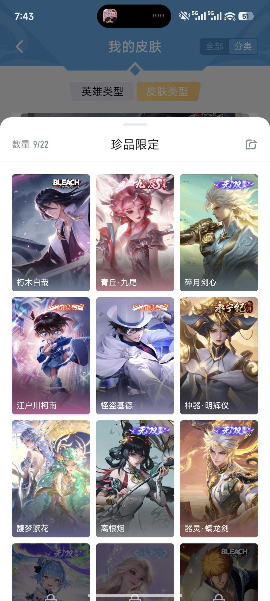 V10、543皮14水、吕布典藏-千魇归渊、愿照·九州拓、愿照·众生和、怪盗基德、伽罗星传说红枫、瑶典藏拾光映像、冥王哈迪斯、、龙年限定、齐天大圣