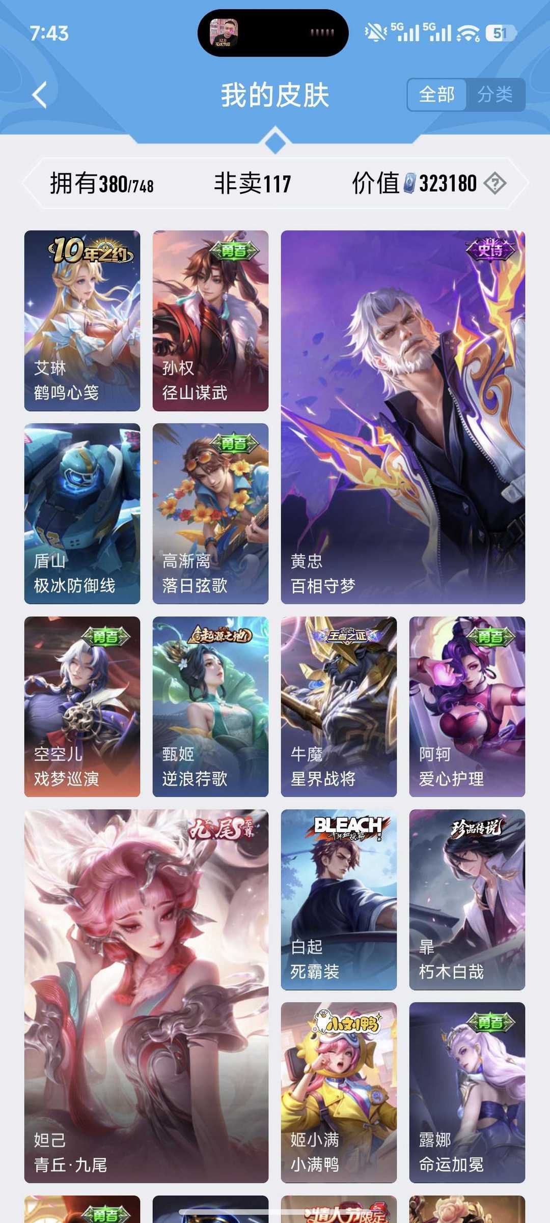 v10、524皮5水4无双、遇见神鼓、齐天大圣、白虎志、韩信荣耀典藏、72传说、愿照·九州拓、时之魔女、瑶无双、青丘、九尾、神器明辉仪