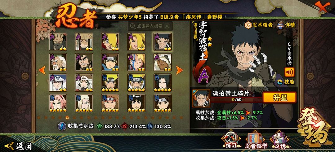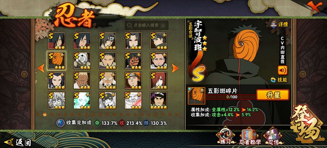 熊猫蛞蝓43S★61A★2160多万战斗力★忍战小樱,九喇嘛鸣人,永恒佐★ 漂泊六道佩恩,漂泊带土,泳装照美冥★ 白面具百豪纲手★大筒木金式★红面具男★死门凯★秽土鼬★秽土斑★秽土长门★秽土水门★秽土2代