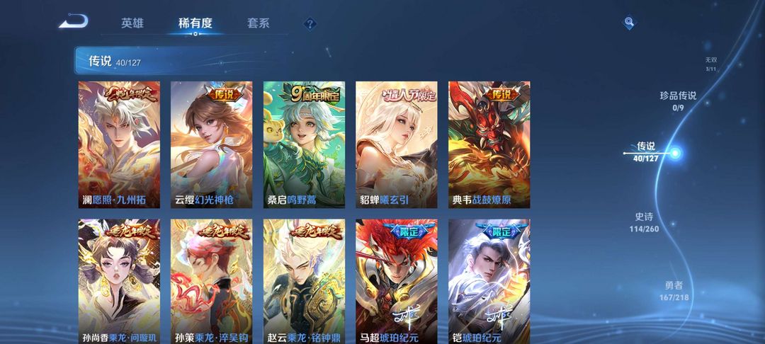 V10、543皮14水、吕布典藏-千魇归渊、愿照·九州拓、愿照·众生和、怪盗基德、伽罗星传说红枫、瑶典藏拾光映像、冥王哈迪斯、、龙年限定、齐天大圣