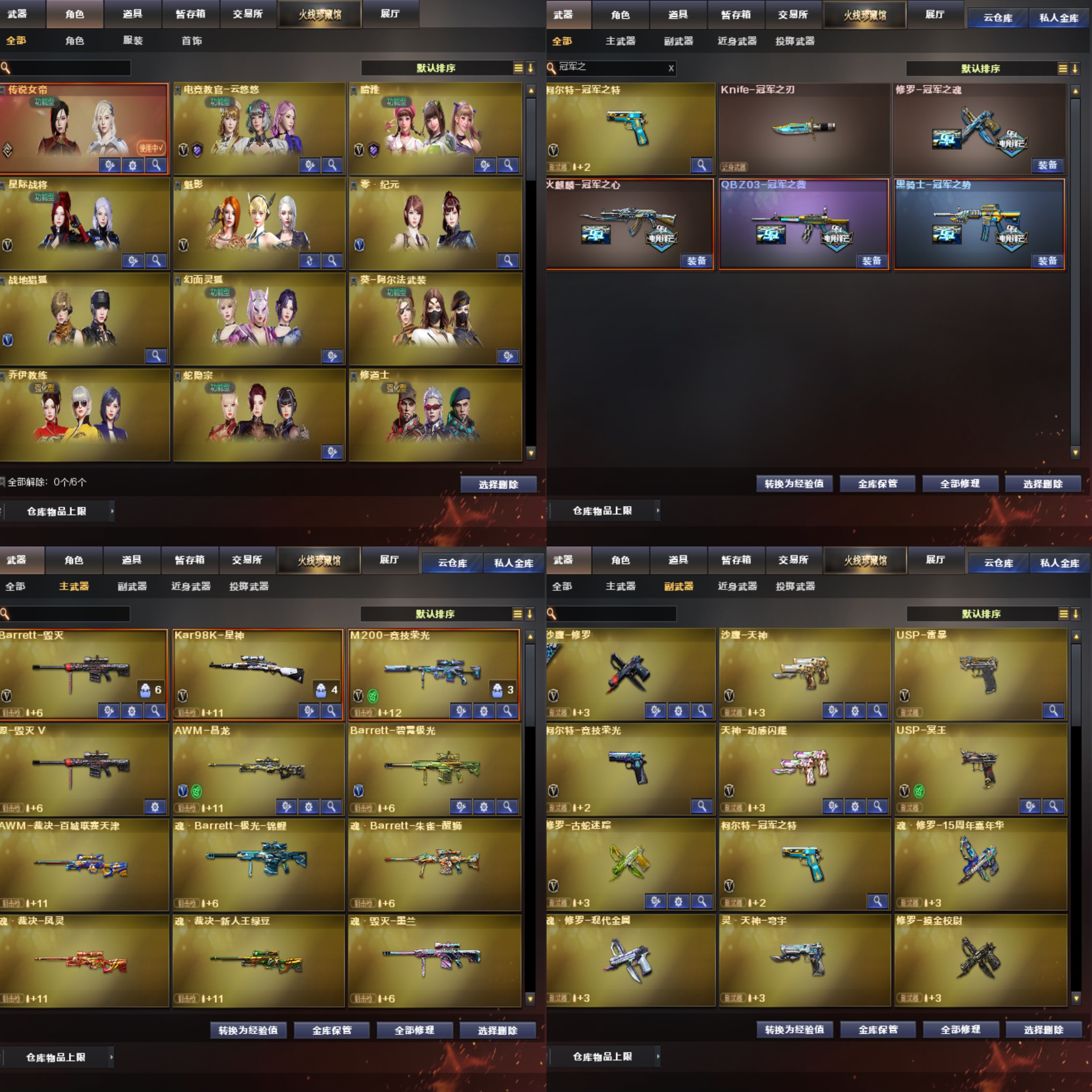 传说女帝/白虎/九霄圣角/m200-竞技荣光/98k星神/USP雷暴/USP冥王/冠军之特/冠军之刃