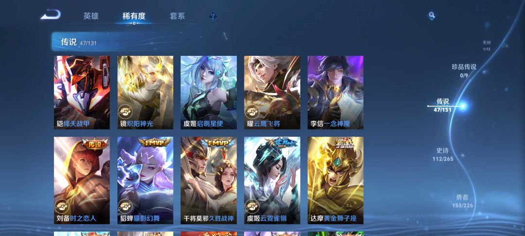 v10、12水555皮、死亡执政官、刘备星传说时之思念、小兵皮肤大耳狗甜茶、瑶无双真我赫兹、愿照·九州拓、怪盗基德、画中仙、至尊宝、凤求凰、神威、天魔缭乱