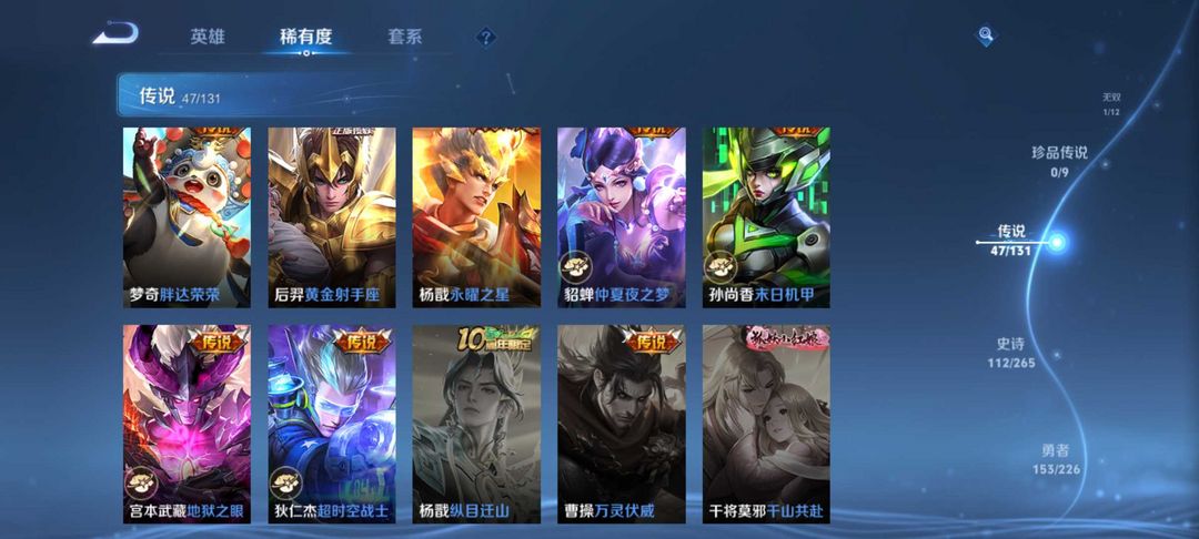 v10、524皮5水4无双、遇见神鼓、齐天大圣、白虎志、韩信荣耀典藏、72传说、愿照·九州拓、时之魔女、瑶无双、青丘、九尾、神器明辉仪