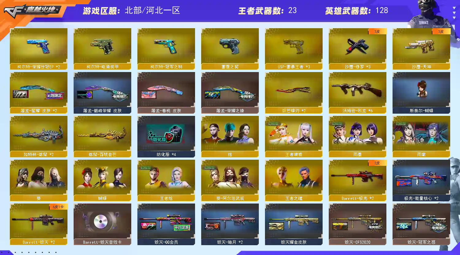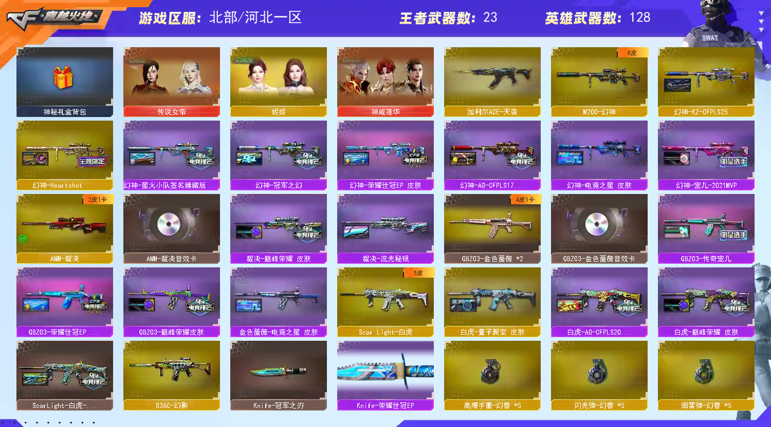 开挂起诉追责;USP-雷暴王者,柯尔特-冠军之特,炽芒蝶刃,Knife-冠军之刃,传说女帝,妮妮,QBZ03-金色蔷薇,