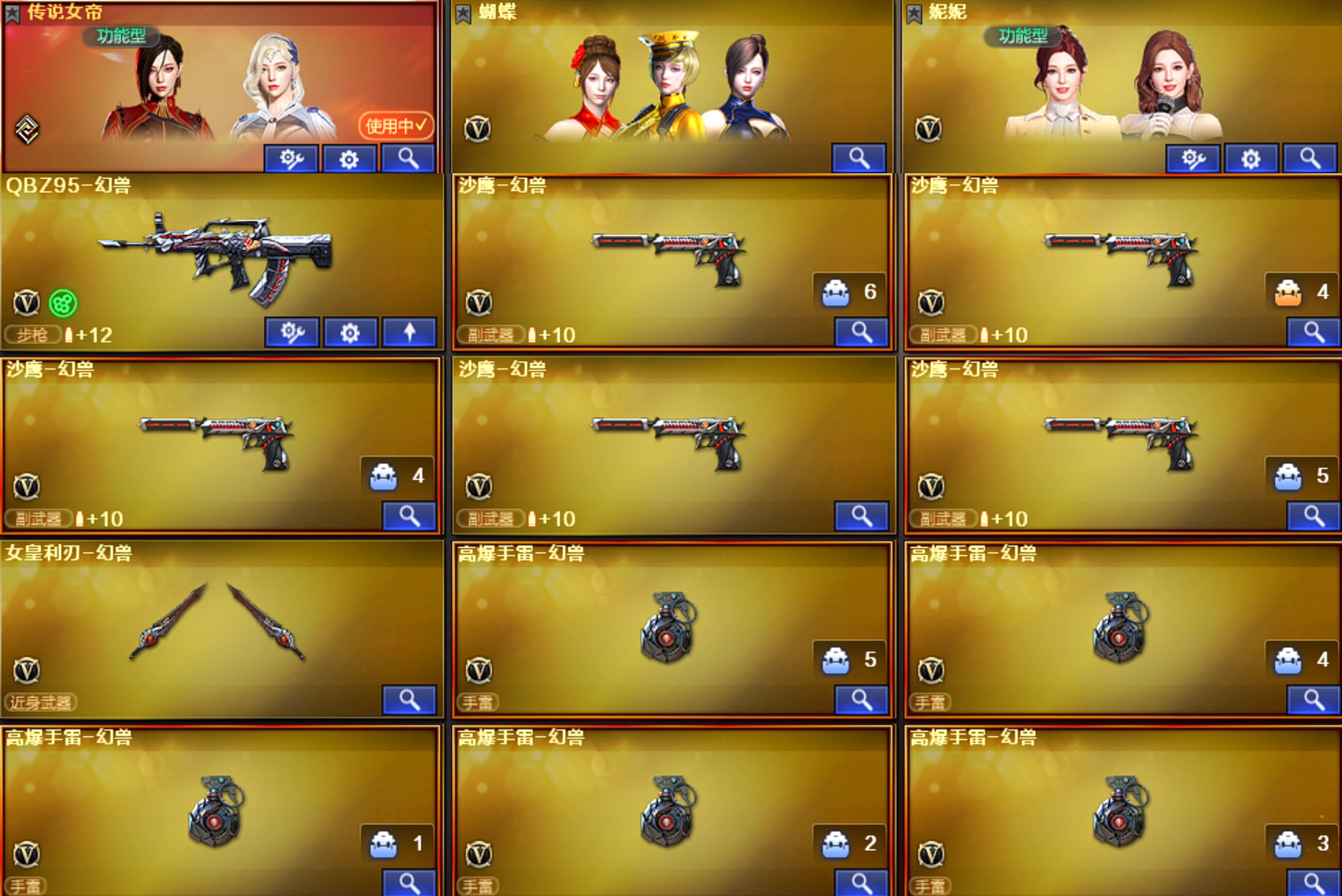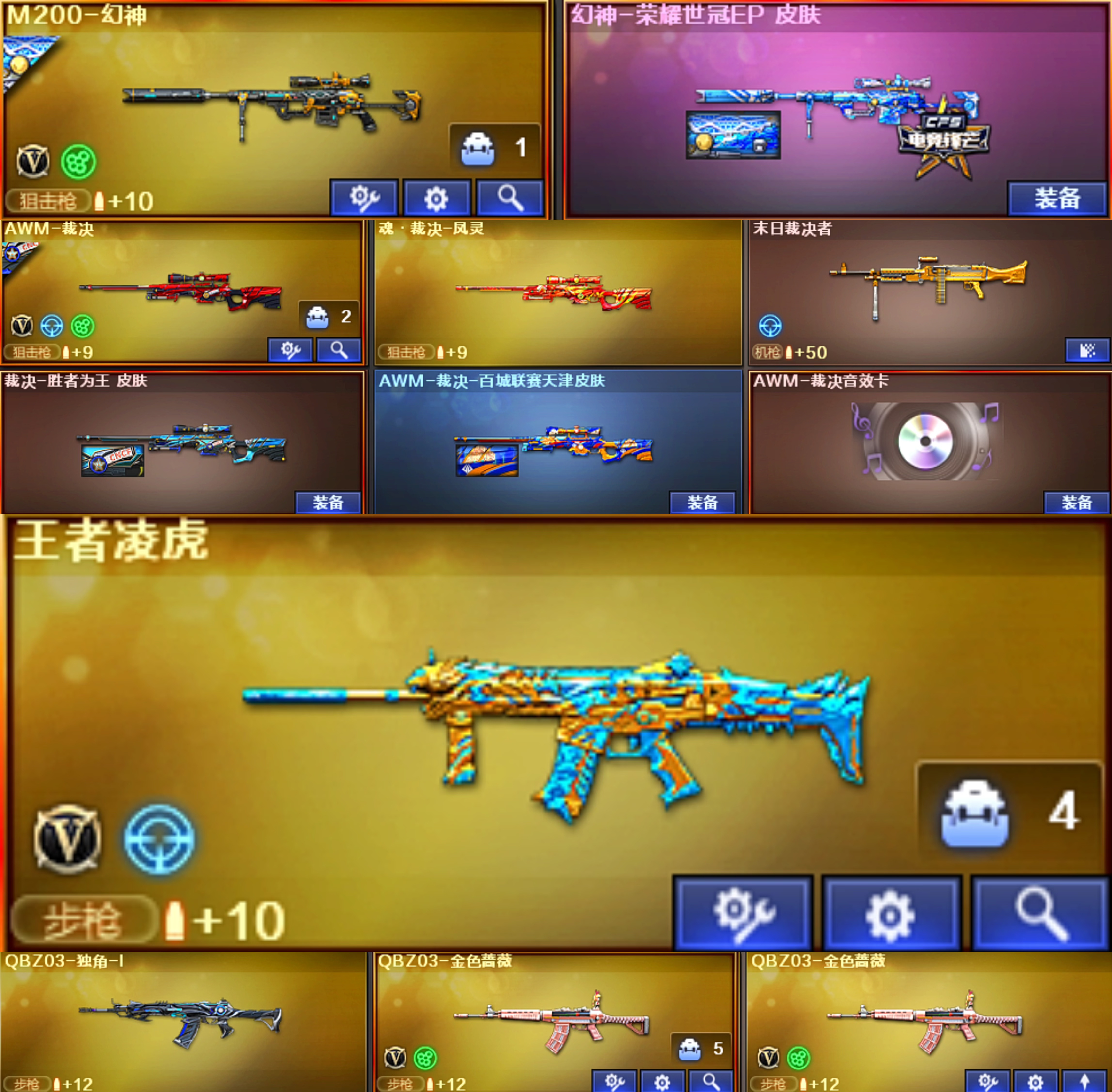 东部 妮妮传说女帝5幻兽 幻神ep 裁决音效卡 王者凌虎白虎 qbz EP柯尔特 EP小刀 USP冥王 COP极地霜雄;传说女帝,妮妮,RPK-盘龙,QBZ03-金色蔷薇,M200-幻神,