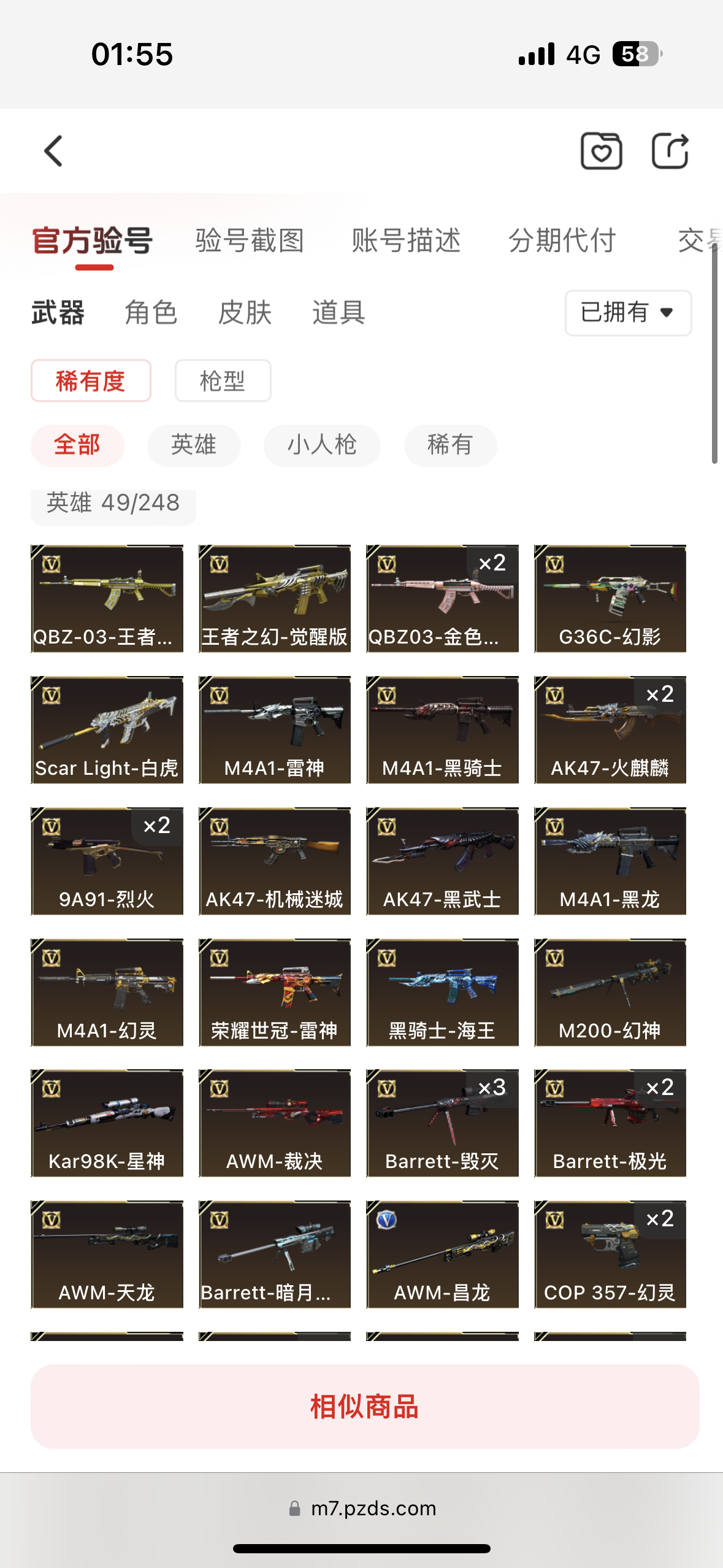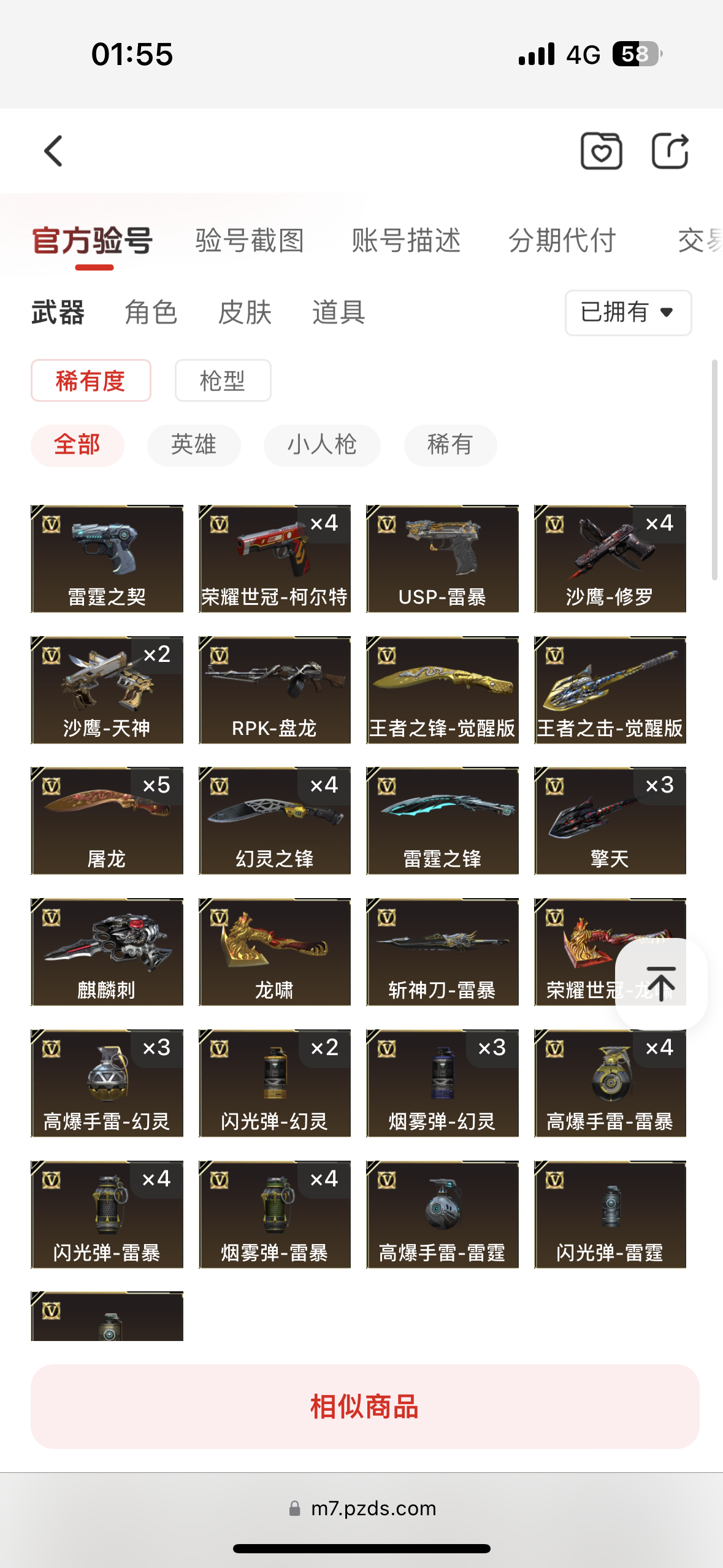 Lv.102 荣耀元帅】 81V,1王者,2炫金,幻神星火小队/幻神星耀 /星神巅峰荣耀 /毁灭冠军之怒/毁灭星空/毁灭荣耀之怒/毁灭黑大圣/极光能量核心/天龙传奇70KG/天龙传奇白鲨/_樱/_影豹/战地猎狐/M200-幻神/Barrett-毁灭(3)/Barrett-极光(2)/Barrett-暗月传说/Kar98K-星神/幻灵套装/M200-幻神音效卡/Kar98K-星神音效卡/M4A1-雷神音效卡/M4A1-黑骑士音效卡/AK47-火麒麟音效卡/Barrett-毁灭音效卡/AWM-昌龙-怀旧音效卡;USP-雷暴,荣耀世冠-柯尔特,RPK-盘龙,QBZ03-金色蔷薇,G36C-幻影,M200-幻神,Scar Light-白虎,