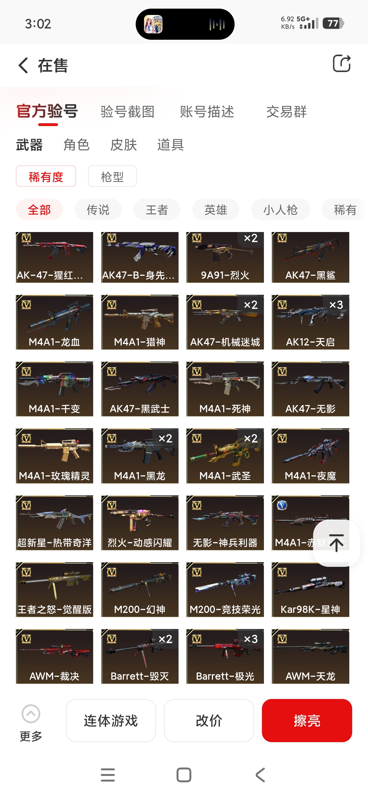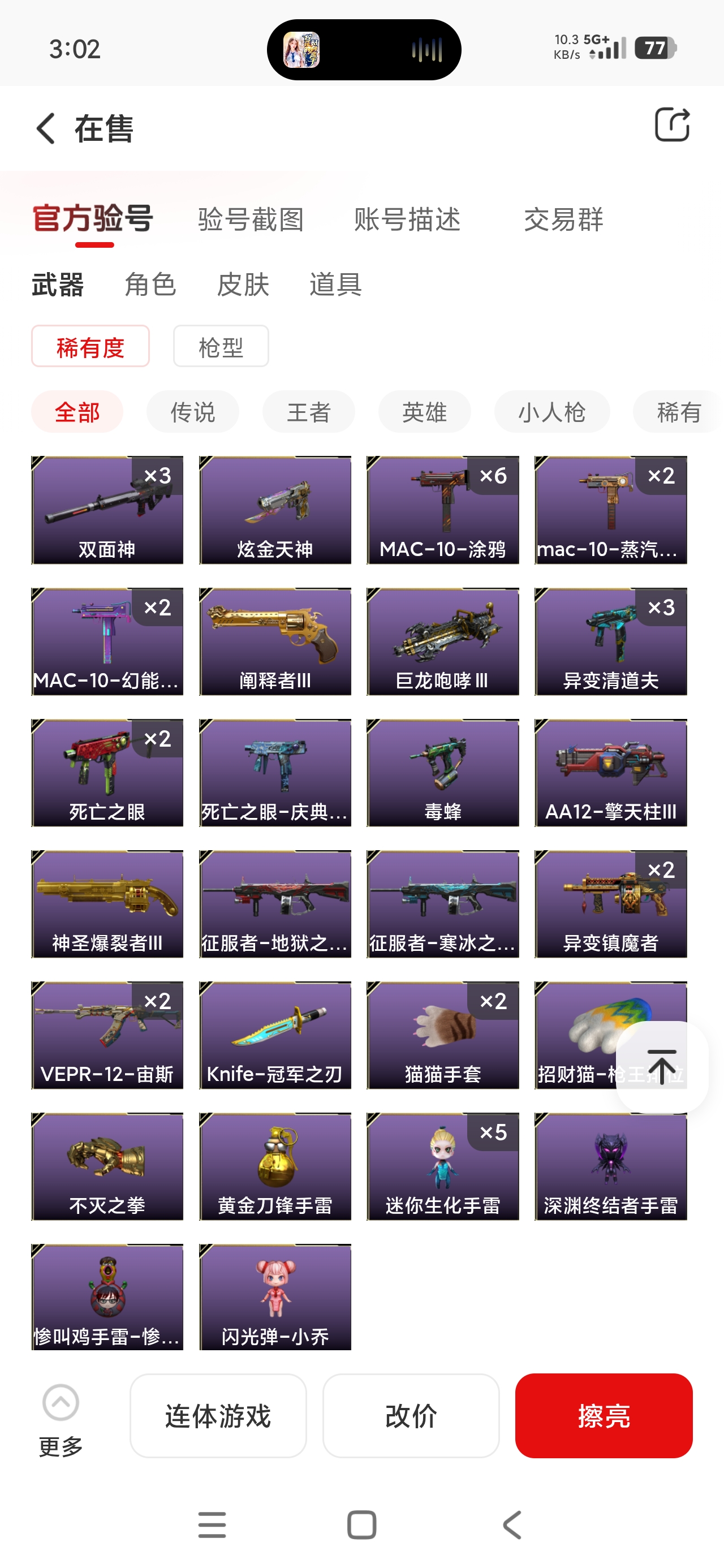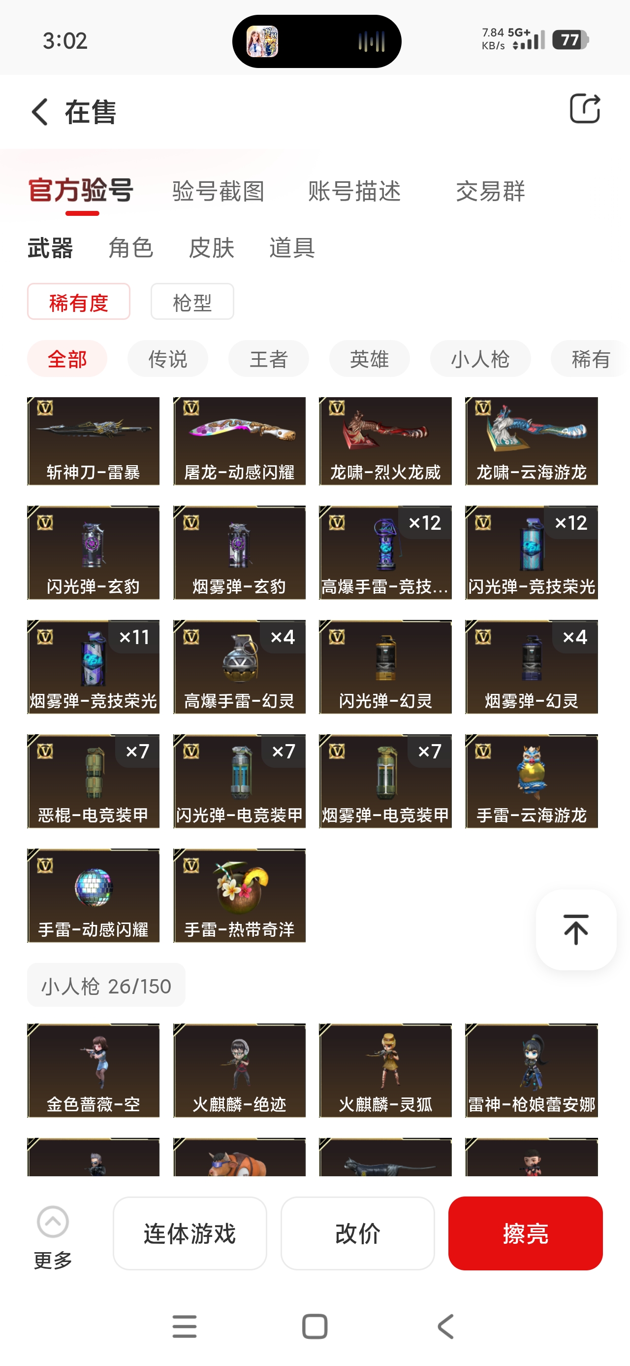 东部生化爆破挑战账号:所有武器装备道具等请老板们直接看截图,真实有效截图上传平台。 未能截图到的武器装备道具等,还请老板们上号仓库自查! 欢迎老板们收藏租玩!!!;Knife-冠军之刃,沙漠玫瑰,隼,电竞教官-云悠悠,RPK-盘龙,QBZ03-金色蔷薇,G36C-幻影,