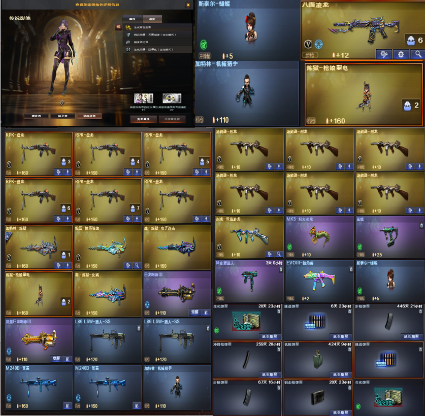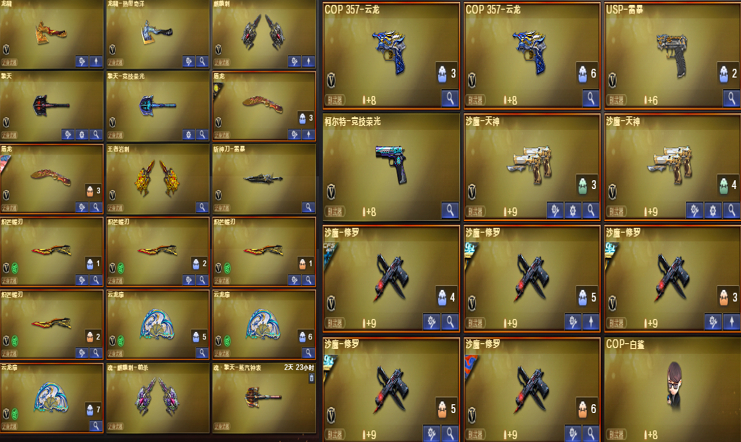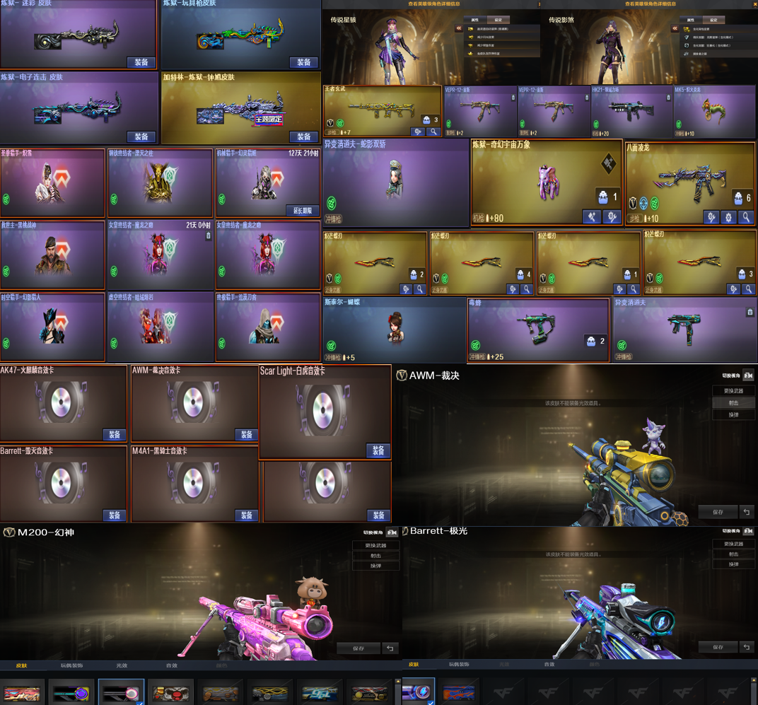 星骇影煞④炽芒蝶刃八面凌龙泡泡象炼狱钟馗玄武蛇影双娇双宙斯全猎皮❤幻神4皮裁决音效卡6盘6烈蝴蝶毒蜂;USP-雷暴,炽芒蝶刃,传说影煞,传说星骇,王者沙漠玫瑰,RPK-盘龙,QBZ03-金色蔷薇,