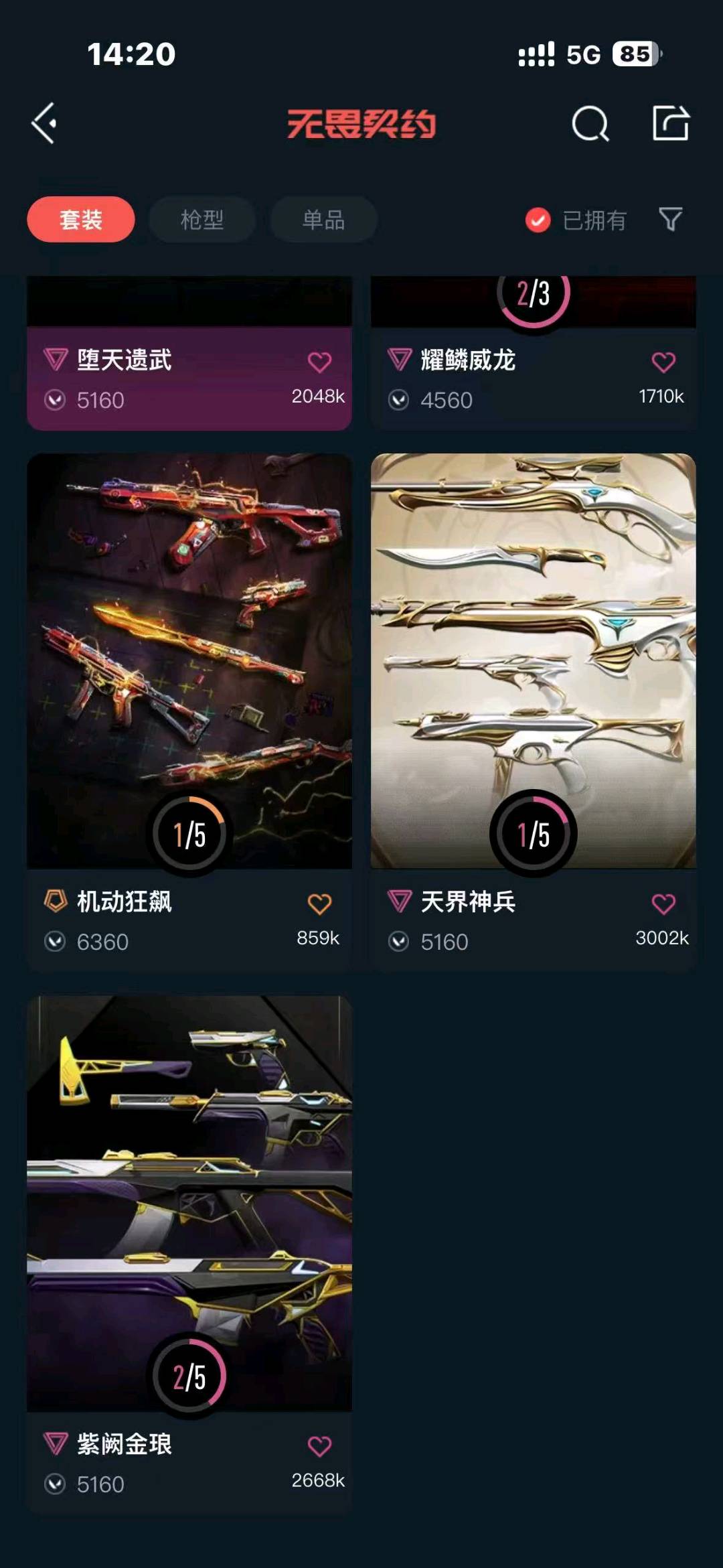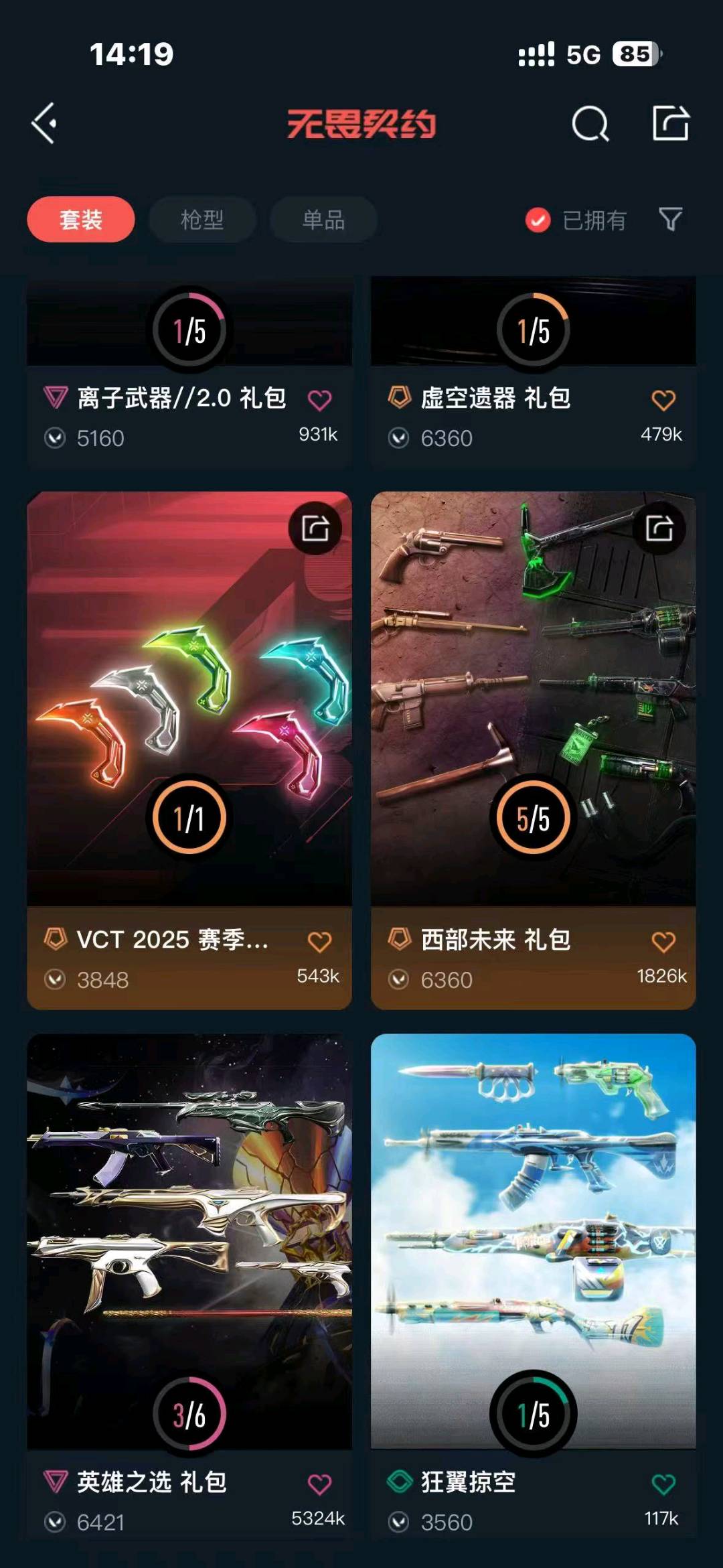 可排位4.8w库存116皮;西部未来 奥丁,威龙之刃,VCT 2025 爪刀,虚空遗器 狂徒,紫阙金琅 狂徒,RGX 11z Pro 狂徒,堕天遗武 狂徒,