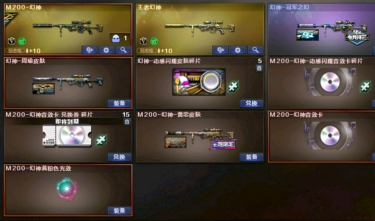 幻神3皮冠军之幻4件套❤幻神音效h❤星神王幻❤神工天巧全套❤炽芒蝶刃破浪逐光❤荣耀世冠❤王者凤势白虎;荣耀世冠-柯尔特,炽芒蝶刃,电竞教官-云悠悠,晴雅,RPK-盘龙,QBZ03-金色蔷薇,M200-幻神,