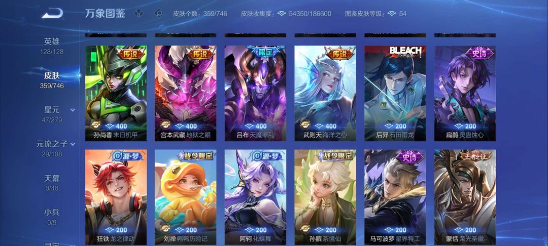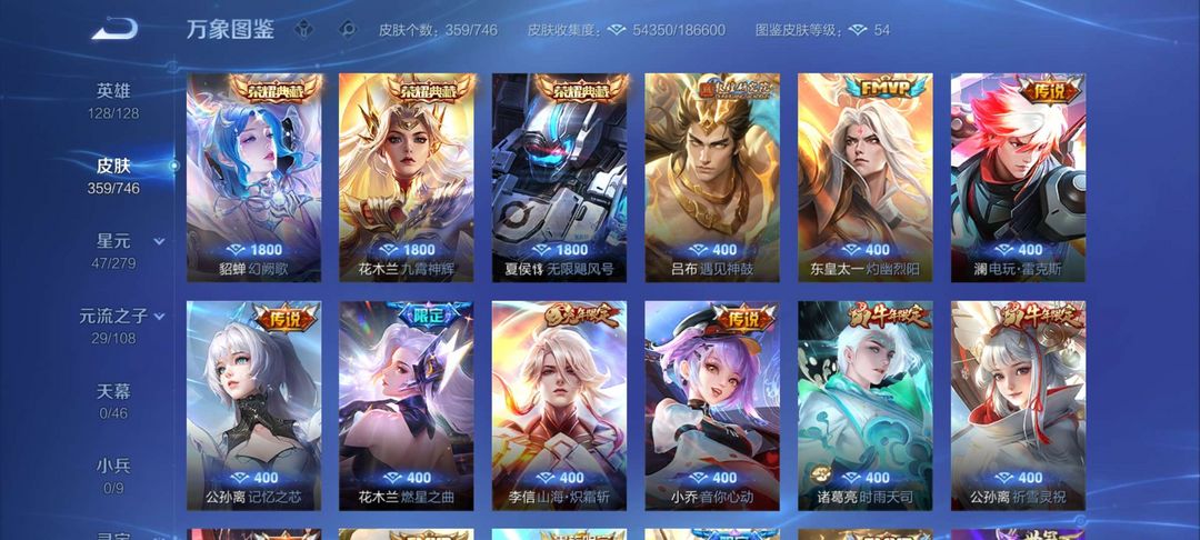 v10、12水562皮、死亡执政官、刘备星传说时之思念、小兵皮肤大耳狗甜茶、瑶无双真我赫兹、愿照·九州拓、怪盗基德、画中仙、至尊宝、凤求凰、神威、天魔缭乱