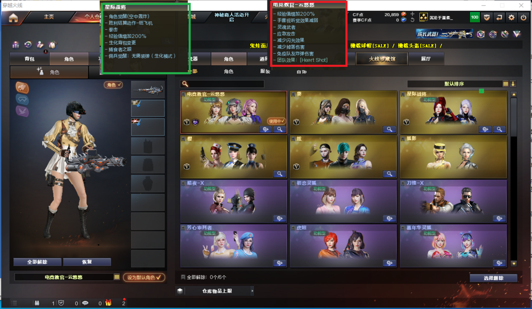 排位:可以、、、、生化全装(可以查看生化僵尸血量):6烈、盘龙、炼狱、死亡之眼、MAC涂鸦、手斧镜、超级对讲机、常用弹匣、、、、、、、、爆破全装:幻神、M200-竞技荣光、USP雷暴、2个COP雷霆、2个柯尔特竞技荣光、白虎、王者芳薇、、、毁灭音效、、、4套雷霆、2套堕天神、5套竞技荣光、、、生化三防(星际战将)爆破人物(云悠悠);USP-雷暴,电竞教官-云悠悠,M200-幻神,Scar Light-白虎,