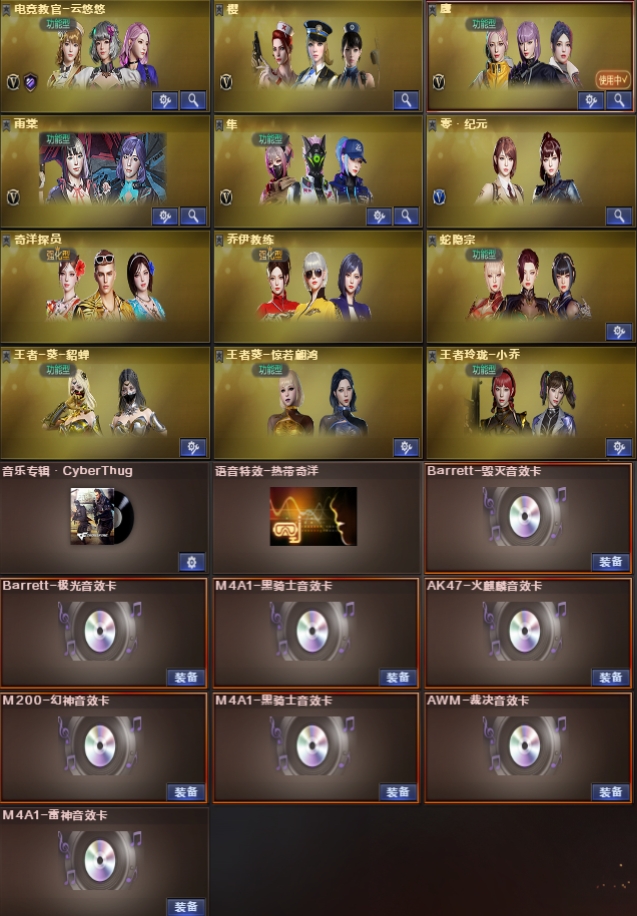 禁止开挂,裁决三件套,幻神三件套,高质量手枪,星神白虎蓝兔,八张音效卡,鹰角色,满雷