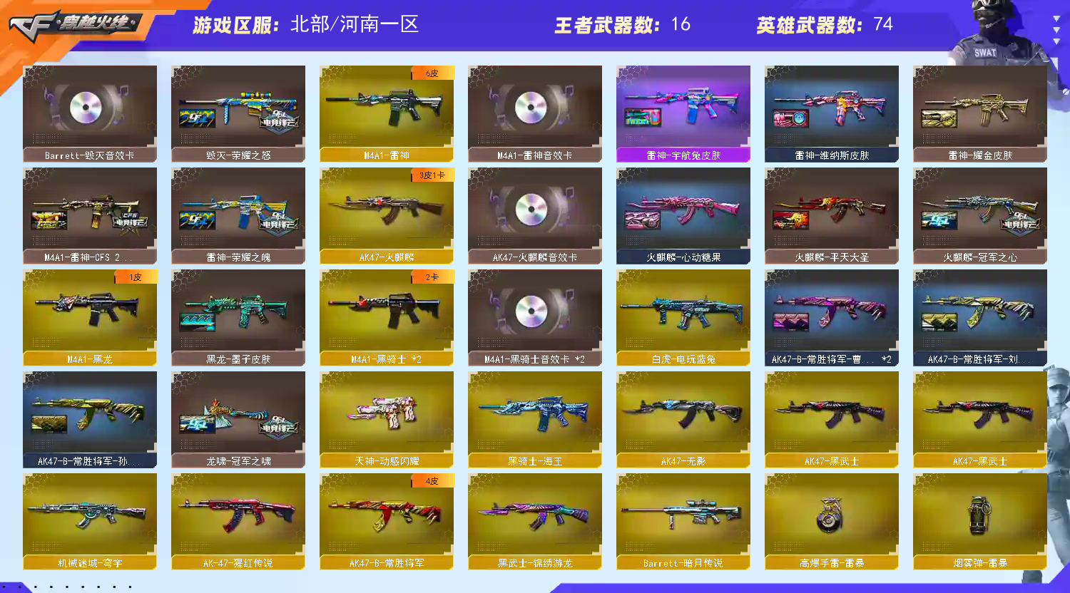 • 游戏区服:穿越火线 / 网通区 / 河南一区