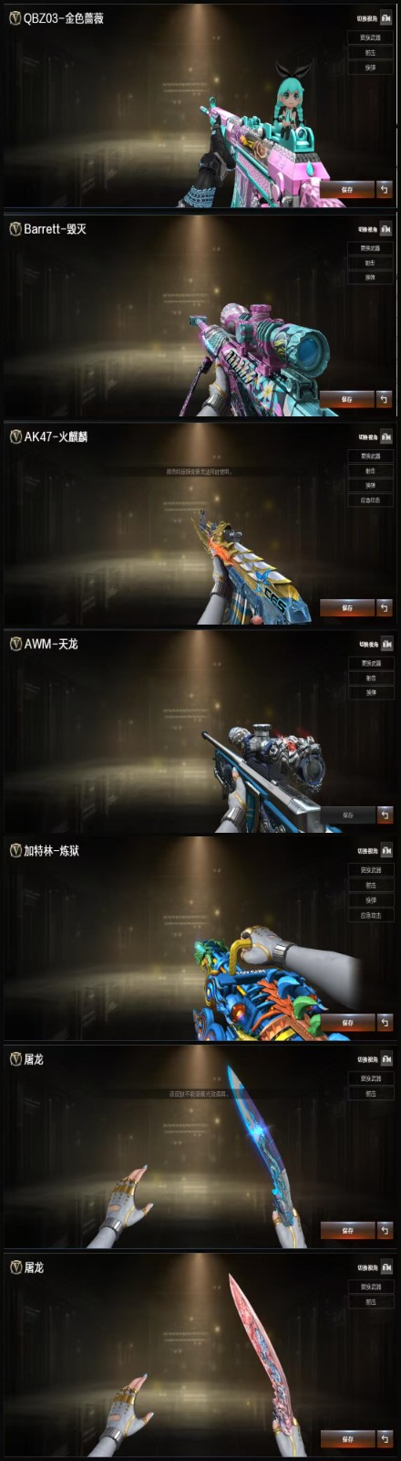 【6烈龙】【毒蜂】【MK5-炽火炎龙】【异变清道夫】【斯泰尔-蝴蝶】【6盘龙】【炼狱-迷你小钢】【云龙套装X1套】【竞技荣光套装X2套】【传说影煞】【传说幽冥】【M200-竞技荣光】【王者星霆】【AWM-裁决】【AWM-裁决音效卡】【Scar Light-白虎】【王者白虎-觉醒版】【QBZ03-金色蔷薇】【QBZ03-传奇宠儿】【QBZ03-云龙】【QBZ03-天罚】【FAMAS G2-天戎】【G36C-幻影】【王者玄武】【USP-雷暴】【柯尔特-竞技荣光】【COP 357-云龙】【炽芒蝶刃】【炼狱-迷你小钢】【加特林-炼狱】【RPK-盘龙】【炼狱-悦蓝-觉醒版】【炼狱-百战金芒】【汤姆逊-烈龙】【烈龙-云海游龙】【斯泰尔-蝴蝶】【MK5-炽火炎龙】【毒蜂】【异变清道夫】【传说影煞】【电竞教官-云悠悠】【机械姬】【奇洋探员】【乔伊教练】【蛇隐宗】【王者葵-惊若翩鸿】【王者潘多拉】【王者沙漠玫瑰】【修道士】【鹰】【雨墨】【云海玲珑】【隼】【魅影】【M4A1-雷神】【火麒麟-CFSTAR】【M4A1-黑骑士】【M4A1-黑龙】【Barrett-毁灭】【毁灭-云海游龙皮肤】;USP-雷暴,传说幽冥,炽芒蝶刃,传说影煞,隼,电竞教官-云悠悠,王者沙漠玫瑰,