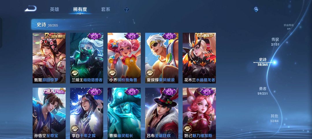 V10、543皮14水、吕布典藏-千魇归渊、愿照·九州拓、愿照·众生和、怪盗基德、伽罗星传说红枫、瑶典藏拾光映像、冥王哈迪斯、、龙年限定、齐天大圣