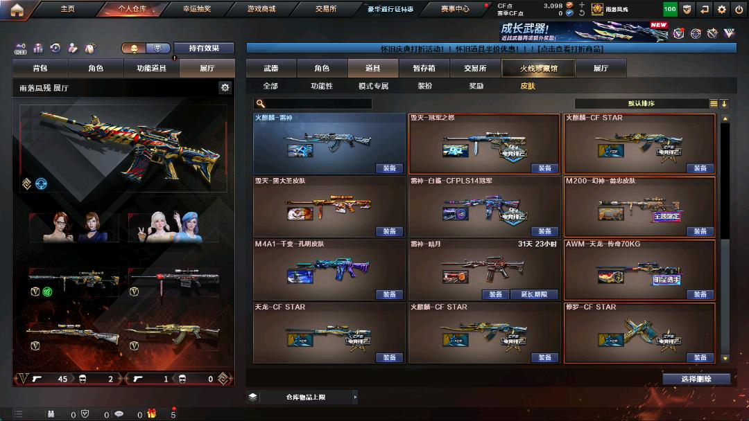 禁止使用第三方软件外挂、鼠标宏、驱动发现立马封杀租号玩账户,严重导致封号大于31天以上店铺将协助号主起诉追究赔偿,文明游戏维护美好游戏环境祝各位老板游戏玩的开心,生活过的幸福。;USP-雷暴,RPK-盘龙,M200-幻神,Scar Light-白虎,传说暗裔,