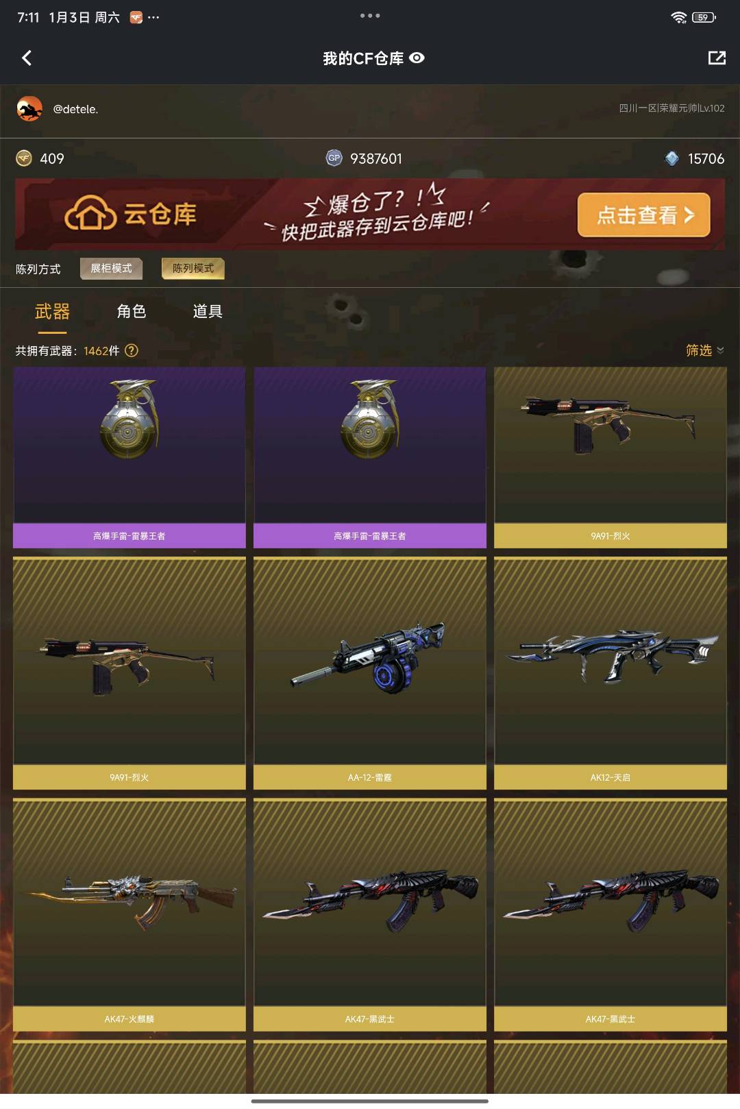 • 游戏区服:穿越火线 / 电信区 / 四川一区