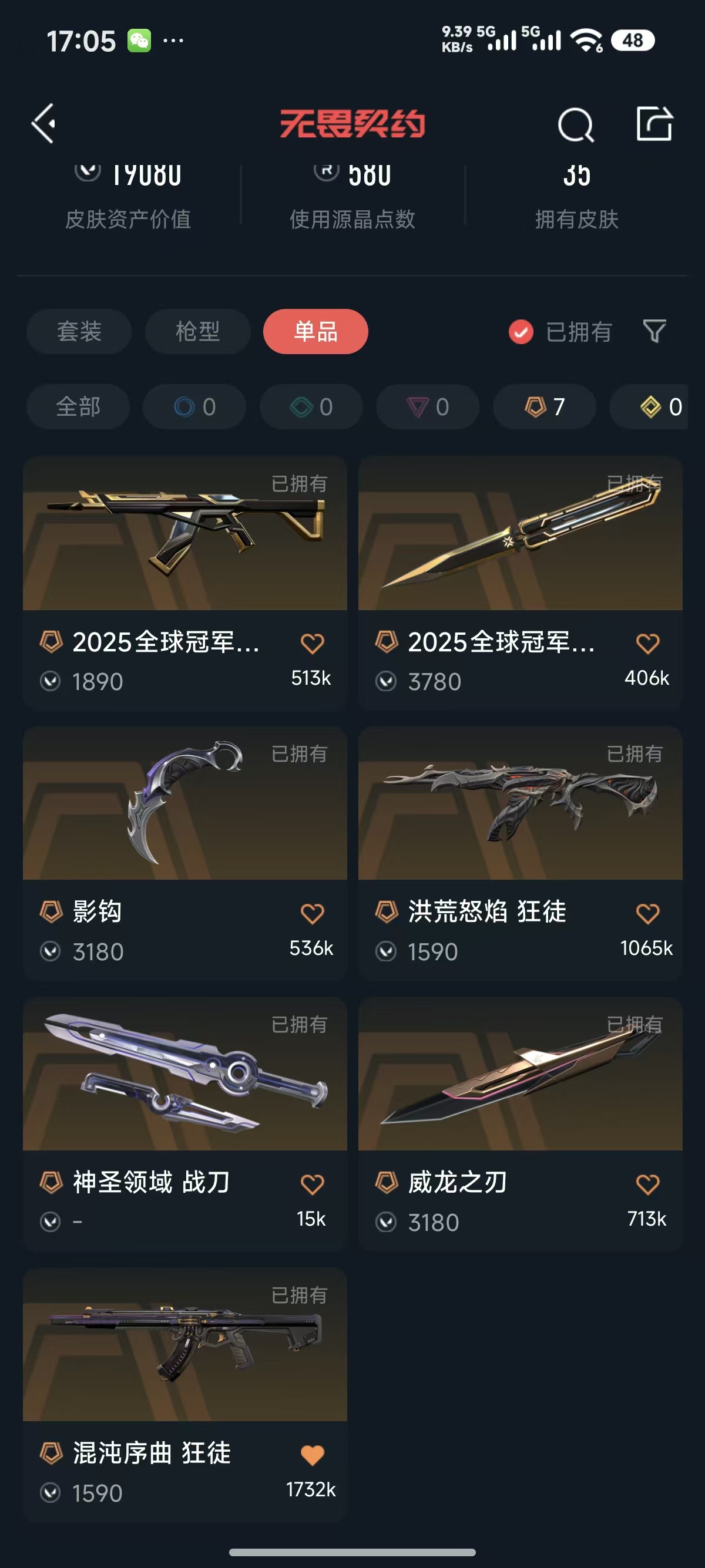 首页 > 租号大厅 > 无畏契约-wegame > wegame/wegame > 25冠军套装✨影钩✨威龙之刃✨混沌 流脓狂徒✨侦察幻影✨紫金戍卫✨弃王冥驹