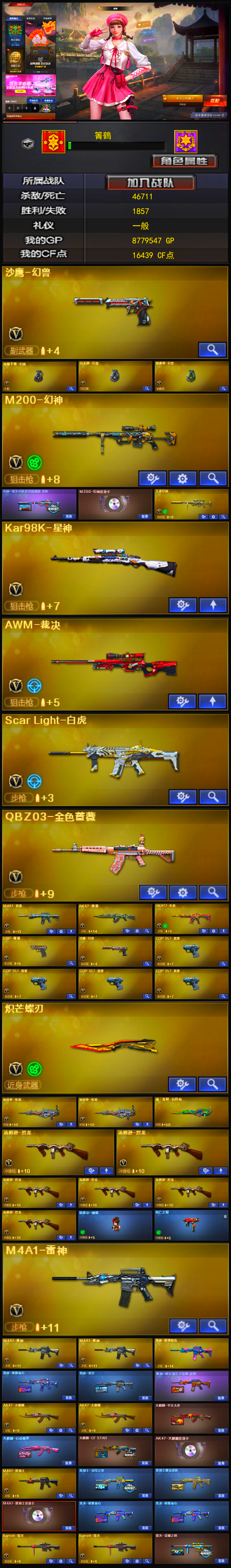 【亮点解析 幻神三件套 生化高配 武器齐全 幻兽雷】【m200幻神+音效卡+星火小队+usp雷暴】【98k星神】【王者幻神】【6烈龙 炼狱*2 炽芒蝶刃 斯太尔蝴蝶】【scar白虎】【qbz金色蔷薇】【hk417朱雀】【火麒麟+卡】【雷神】【黑骑士+卡+冠军之势】【毁灭+荣耀之怒】【极光】【裁决】【雷霆套 雷暴套】 【武器:雷霆 雷暴 王者之翼 王者之魄 王者之势 】 【13手呛:修罗*3 天神*4 cop雷霆*4 沙鹰幻兽】 【15刀具:屠龙*4 龙啸*3 擎天 麒麟刺*2 尼泊尔雷霆 斩神刀雷暴 女皇利刃幻兽 王者之刺 龙啸烈火龙威】 【15雷套:幻兽雷 雷霆雷*7 雷暴雷*7】 【小人呛:朱雀蛇隐宗 雷神精英刀锋 火麒麟灵狐 天龙曼陀罗】 【音效卡:幻神音效卡 黑骑士音效卡 火麒麟音效卡 】 【四防角色:王者岚兮儿】;USP-雷暴,炽芒蝶刃,晴雅,QBZ03-金色蔷薇,M200-幻神,Scar Light-白虎,Kar98K-星神,