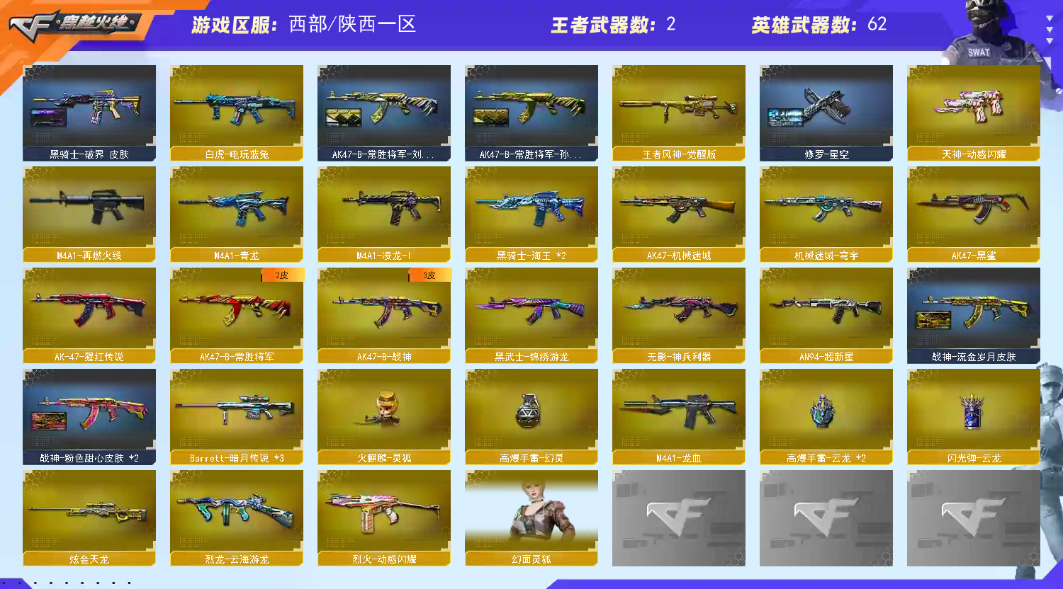 • 游戏区服:穿越火线 / 电信区 / 陕西一区