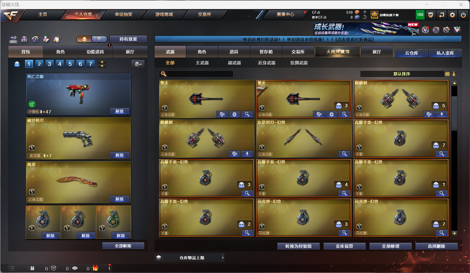首页 > 租号大厅 > 穿越火线 > 网通区/河南一区 > 6烈6盘|幻兽套|毁灭音效卡可排位|英雄角色|王者武器|炫金武器|英雄级|全装