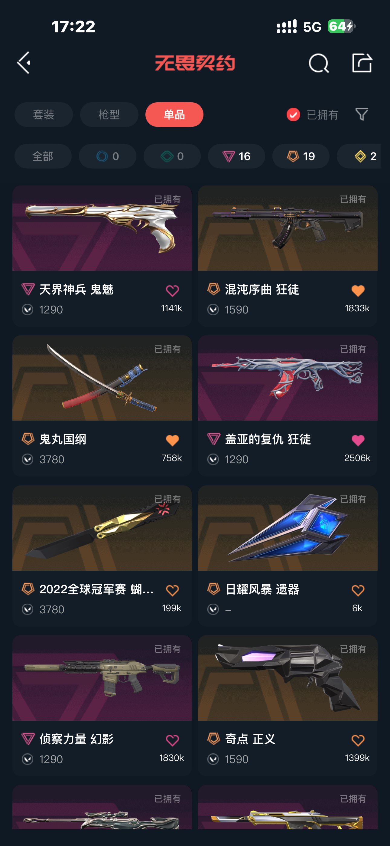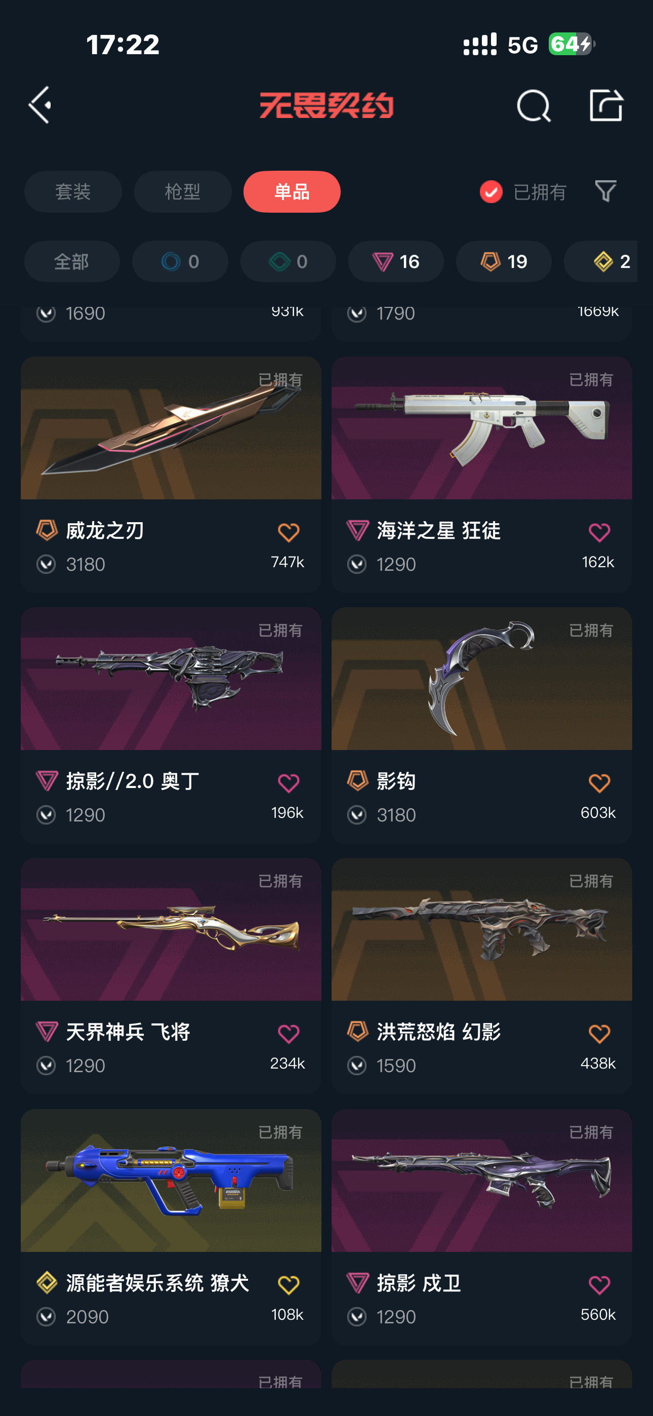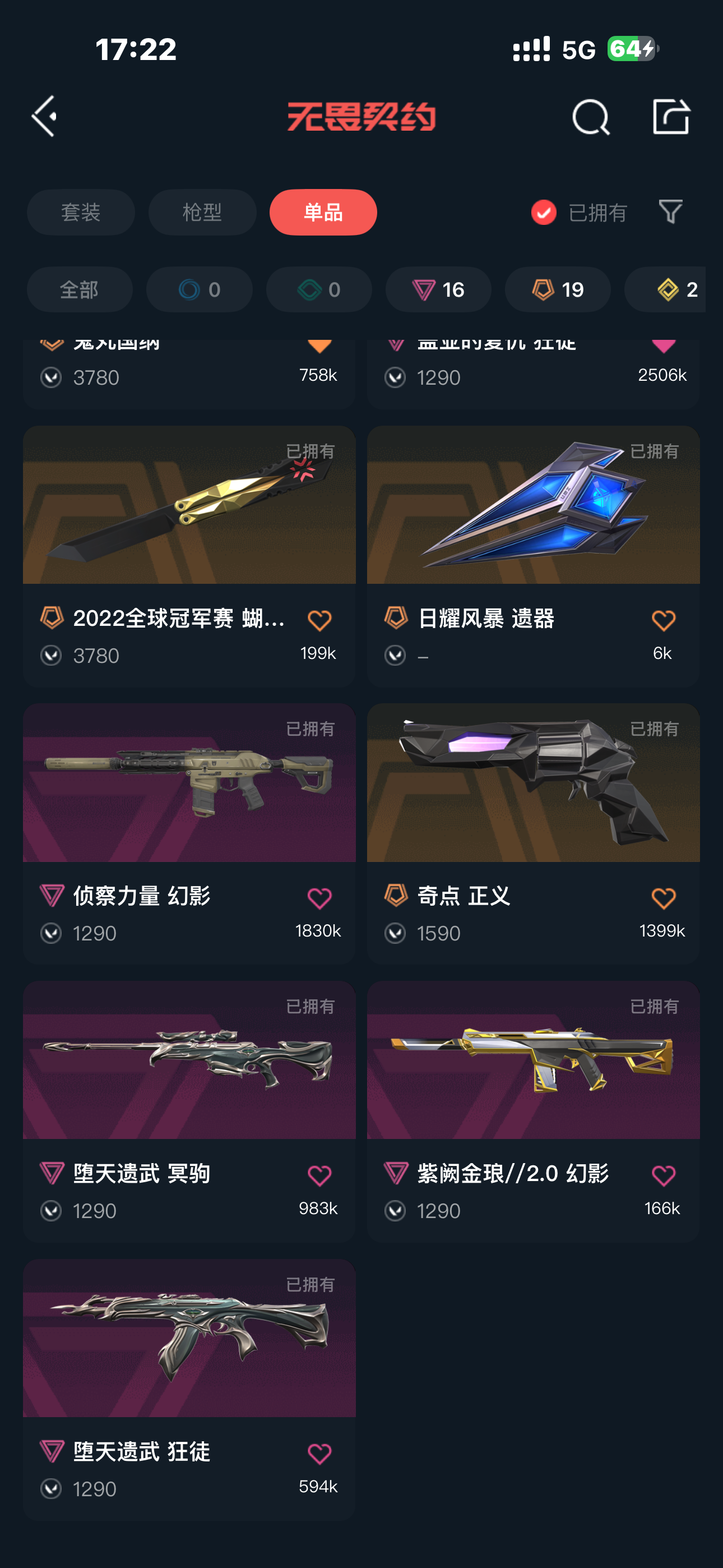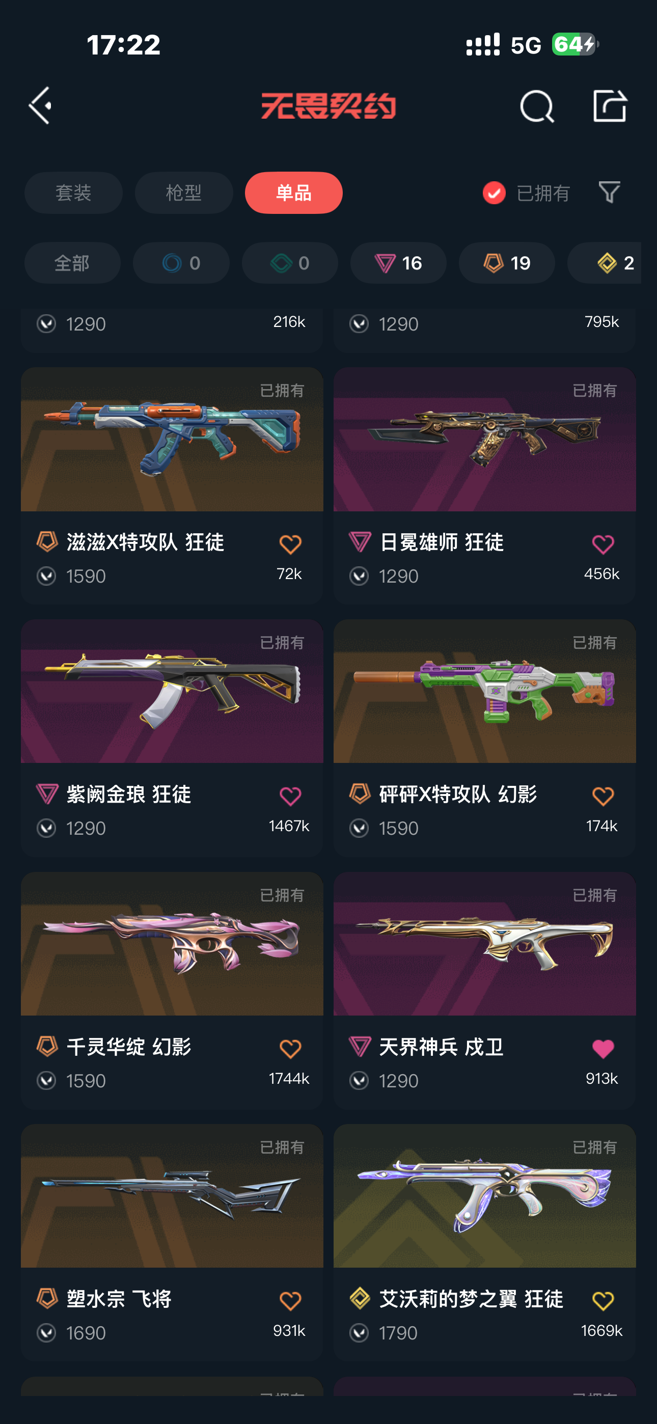 可排位 英雄23 武器皮肤数量84;