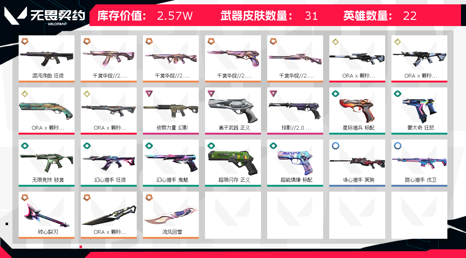 首页 > 租号大厅 > 无畏契约-wegame > wegame/wegame > ORA*颗秒套 满级//莲花2.0 满级//混沌狂徒//侦查力量 幻影//离子武器 正义