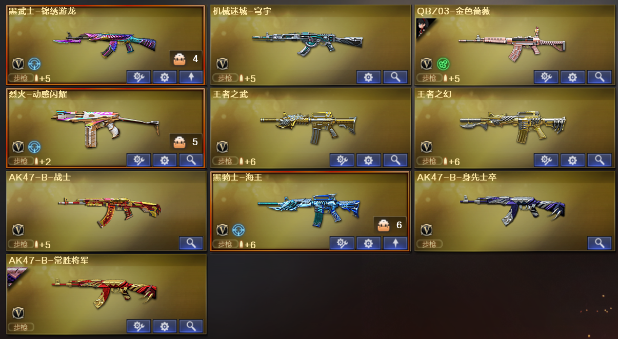 可爆破可生化;USP-雷暴,柯尔特-冠军之特,电竞教官-云悠悠,RPK-盘龙,QBZ03-金色蔷薇,G36C-幻影,M200-幻神,