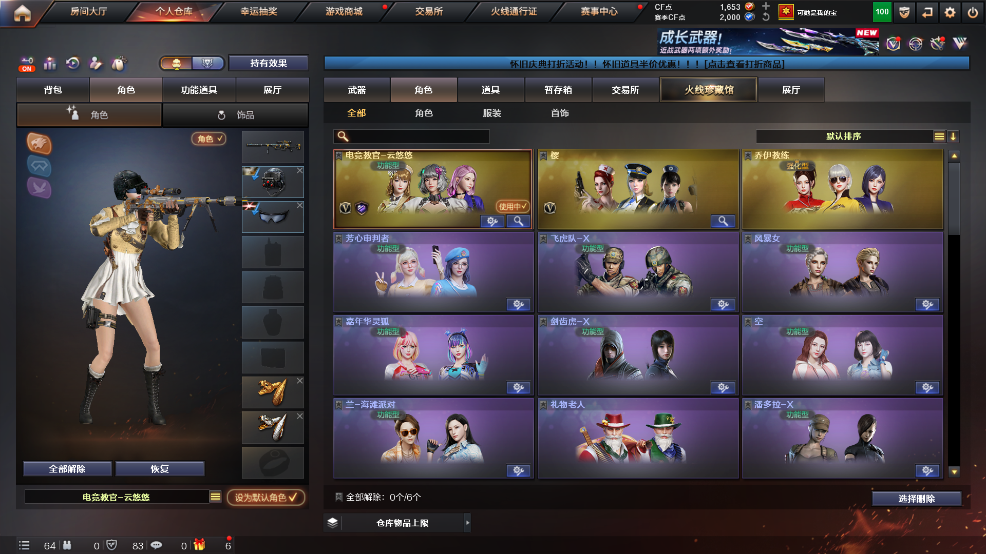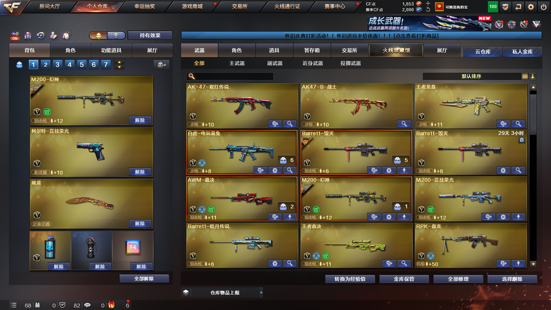 幻神黄忠|竞技荣光套装|云悠悠|六烈蝴蝶|6盘炼狱|王者神诀|裁决|毁灭星空音效卡|COP幻灵|;电竞教官-云悠悠,RPK-盘龙,QBZ03-金色蔷薇,M200-幻神,