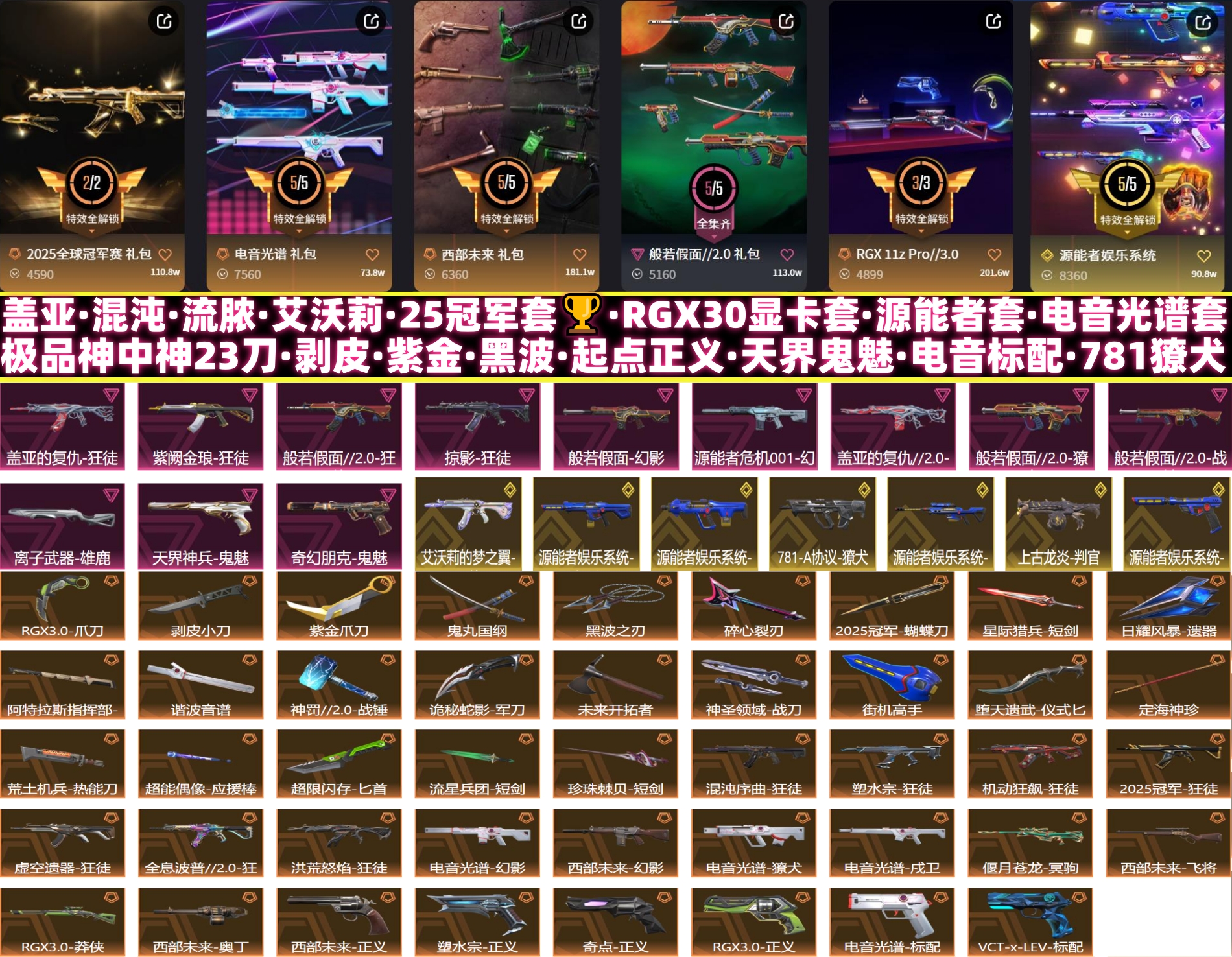 首页 > 租号大厅 > 无畏契约-wegame > wegame/wegame > 【上赛季 白银】极品神中神23刀✅25冠军套🏆盖亚混沌流脓艾沃莉781奇点正义✅RGX爪刀黑波