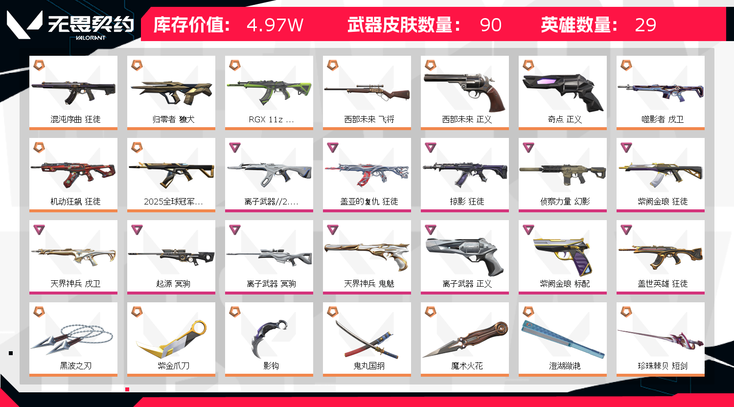 首页 > 租号大厅 > 无畏契约-wegame > wegame/wegame > 电工黑波紫金影钩鬼刀澄湖🔥25冠军三幻神显卡掠影AK🔥侦查M4奇点西部正义离子大狙