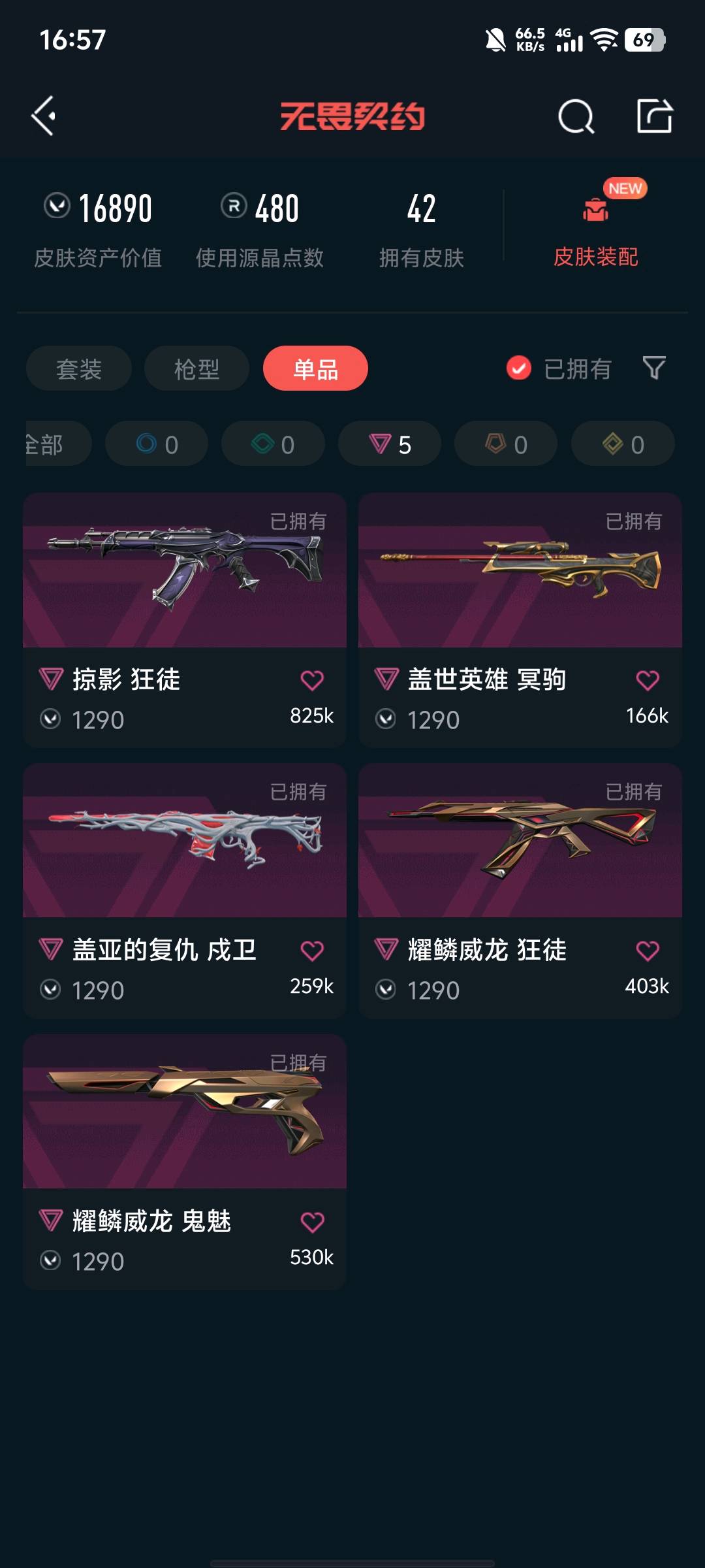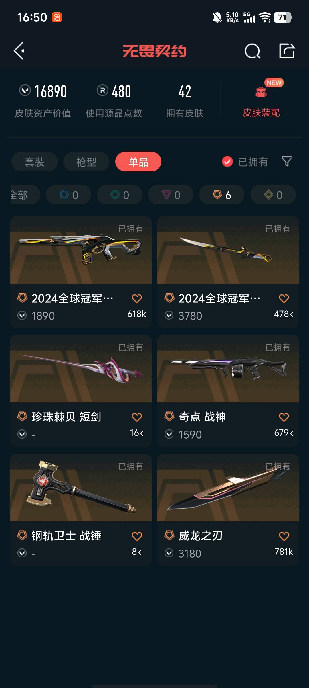 • 皮肤资产价值: 16890
