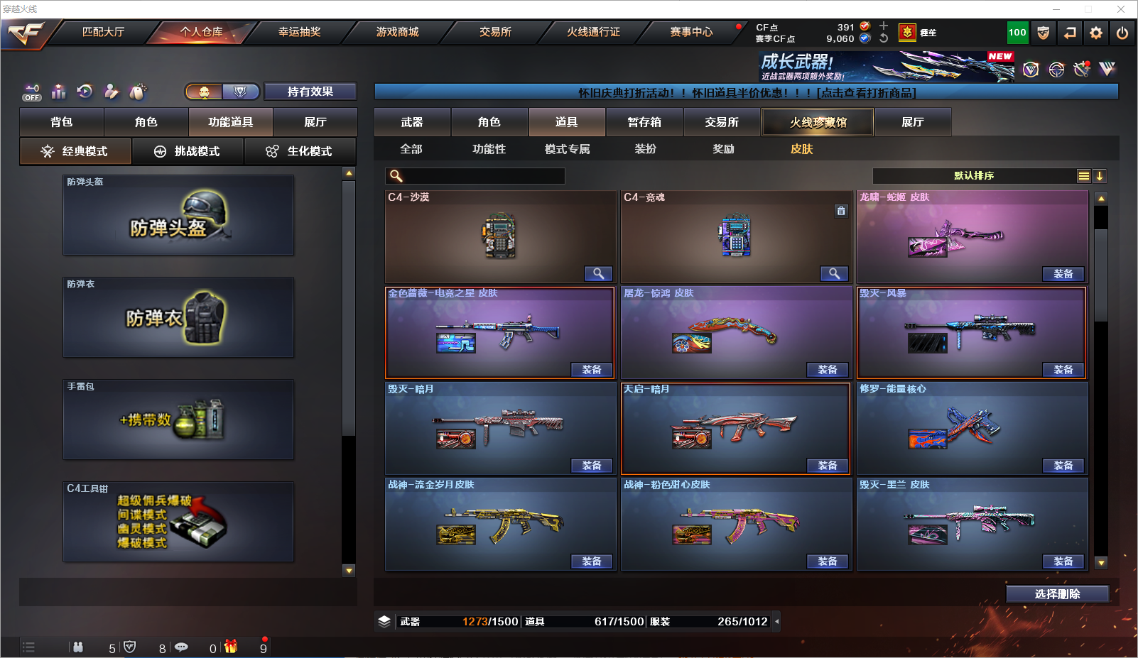 爆破号/生化号/幻神/白虎/四防影豹/小人枪/雷神/加特林/天启/qbz+皮肤/烈龙/生化全幽灵等