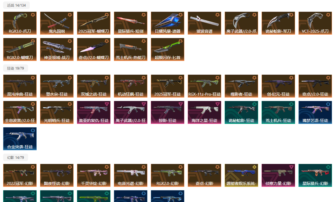 【皮肤资产价值】120840 【使用R点】1555 【英雄数量】27 【皮肤数量】145 【卡面数量】123 【喷漆数量】136 【挂件数量】100 【拥有套装】电音光谱套装(电音光谱-幻影,电音光谱-獠犬,电音光谱-戍卫,电音光谱-标配,谐波音谱)离子武器//2.0套装(离子武器//2.0-狂徒,离子武器//2.0-战神,离子武器//2.0-骇灵,离子武器//2.0-狂怒,离子武器//2.0-爪刀)奇点2.0套装(奇点//2.0-狂徒,奇点//2.0-鬼魅,奇点//2.0-蝴蝶刀)2025全球冠军赛套装(2025全球冠军赛-狂徒,2025全球冠军赛-蝴蝶刀 ) 【拥有近战武器】星际猎兵-短剑,日耀风暴-遗器,诡秘蛇影-军刀,VCT-2025-爪刀,神圣领域-战刀,荒土机兵-热能刀,超限闪存-匕首,鬼丸国纲,RGX-11z-Pro//3.0-爪刀, 【拥有步枪】2022全球冠军赛-幻影,RGX-11z-Pro-狂徒,噬影者-戍卫,噬影者-狂徒,创·纪元-狂徒,光明哨兵-狂徒,混沌序曲-狂徒,双城之战-狂徒,千灵华绽-幻影,黯夜怪谈-幻影,破败军械-戍卫,塑水宗-狂徒,全息波普//2.0-狂徒,归零者//2.0-戍卫,机动狂飙-狂徒,奇点-幻影,源能者娱乐系统-幻影,天界神兵-戍卫,盖亚的复仇-戍卫,盖亚的复仇-狂徒,侦察力量-幻影,海洋之星-狂徒,掠影-狂徒,星际猎兵-幻影,日耀风暴-幻影,诡秘蛇影-狂徒,神圣领域-獠犬,神圣领域-幻影,荒土机兵-狂徒,超限闪存-幻影,瑰梦艺语-狂徒,光环序列-戍卫,幻语魔咒-獠犬,甜蜜战术-戍卫,末日之翼-幻影,折光棱晶-戍卫,月球哨兵-戍卫,合金突袭-狂徒,纳米打-幻影,逆冲蛮牛-戍卫,逆冲蛮牛-獠犬,模拟赫兹-獠犬,浮光跃金-戍卫, 【拥有狙击枪】混沌序曲-冥驹,千灵华绽-冥驹,塑水宗-飞将,RGX-11z-Pro//3.0-莽侠,堕天遗武-冥驹,天界神兵-飞将,星际猎兵-飞将,诡秘蛇影-莽侠,荒土机兵-冥驹,超限闪存-莽侠,光环序列-冥驹,甜蜜战术-冥驹,幻语魔咒-飞将,末日之翼-飞将,星云暗涌-冥驹,月球哨兵-莽侠,模拟赫兹-冥驹, 【拥有机枪】砰砰X特攻队-奥丁,艾沃莉的梦之翼-奥丁,日耀风暴-奥丁,神圣领域-战神,光环序列-战神,末日之翼-奥丁,纳米打-奥丁,浮光跃金-战神, 【拥有冲锋枪】混沌序曲-蜂刺,奇点-骇灵,日耀风暴-骇灵,荒土机兵-骇灵,超限闪存-蜂刺,瑰梦艺语-骇灵,折光棱晶-蜂刺,星云暗涌-骇灵,星云暗涌-蜂刺,浮光跃金-骇灵, 【拥有霰弹枪】千灵华绽-判官,机动狂飙-雄鹿,星际猎兵-判官,诡秘蛇影-判官,瑰梦艺语-雄鹿,甜蜜战术-判官,幻语魔咒-雄鹿,月球哨兵-雄鹿,逆冲蛮牛-雄鹿,纳米打-判官,模拟赫兹-雄鹿, 【拥有手枪】VCT25-x-BLG-标配,混沌序曲-短炮,塑水宗-正义,归零者//2.0-正义,奇点-正义,艾沃莉的梦之翼-鬼魅,源能者危机001-标配,海洋之星-短炮,奇幻朋克//2.0-正义,星际猎兵-标配,日耀风暴-正义,诡秘蛇影-鬼魅,神圣领域-狂怒,荒土机兵-标配,超限闪存-正义,瑰梦艺语-鬼魅,光环序列-狂怒,甜蜜战术-鬼魅,幻语魔咒-狂怒,折光棱晶-标配,末日之翼-短炮,星云暗涌-鬼魅,月球哨兵-正义,纳米打-正义,逆冲蛮牛-狂怒,浮光跃金-标配,模拟赫兹-鬼魅, 【稀有挂件】V25第六幕黄金挂饰,金属蝶翼挂饰,无畏契约GO第卷捷风挂饰,薰衣草之心挂饰,第九季白银挂饰,终章猫猫木乃伊挂饰,猫猫木乃伊挂饰,无畏契约GO第卷贤者挂饰,拳击战术熊挂饰,无畏契约GO第卷芮娜挂饰,无畏契约GO第卷零挂饰,熔岩灯挂饰, 【卡面信息】VCT2025CN联赛卡面,布鲁诺中校卡面,分崩离析卡面,我见识过的恐惧卡面,双城之战拥抱卡面,24冠军混沌黯夜怪谈艾沃莉源能者电玩显卡套塑水宗归零者盖世套光明哨兵机动狂飙全息波普破败军械掠夺掠影无畏奇点2.0白银青铜黄金黑铁砖石铂金神话盖亚洪荒离火刃毁灭骑士VCT爪刀创纪元镭切虚空遗器离子2.0西部未来蝴蝶刀黑波显卡AK无畏光荣异象RGX 11Z PRO奇点正义23盖亚铂金22冠军苍龙之刃21冠军超时空卫士掠影2.0影钩赋能掠夺爪显卡AK滋滋X特工队25冠军混沌2.0末日泡泡多弥尔的复仇纳米夺宝ORA颗粒限定;砰砰X特攻队 奥丁,艾沃莉的梦之翼 奥丁,VCT 2025 爪刀,盖亚的复仇 狂徒,噬影者 狂徒,掠影 狂徒,源能者娱乐系统 幻影,