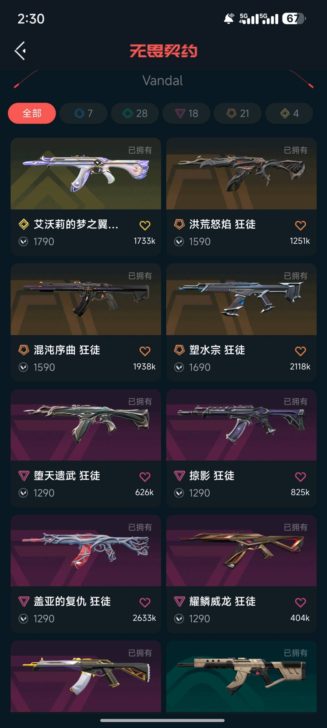 狂徒皮肤:盖亚/紫金/混沌序曲/堕天/艾沃莉的梦之翼/耀鳞威龙/溯水宗/掠影/洪荒怒焰 幻影:侦查力量 刀皮:RGX爪刀/澄湖扇子/奇点蝴蝶刀/威龙之刃/影刃 大狙:掠影/起源 莽侠:RGX11zpro 正义:掠夺/RGX 鬼魅:耀鳞威龙 标配:VCT-LEV标配 戍卫:破败军械/掠影 战神:奇点 不可开挂,尽量不挂机,可以用R点;奇点 战神,威龙之刃,盖亚的复仇 狂徒,掠影 戍卫,洪荒怒焰 狂徒,掠影 狂徒,侦察力量 幻影,