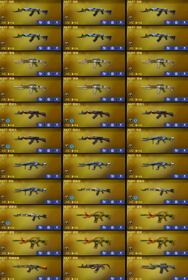 6烈死亡之眼+毒蜂/6盘炼狱/毁灭星空+音效卡/QBZ蔷薇/屠龙荣耀之锋/6修罗/裁决/9A91烈火