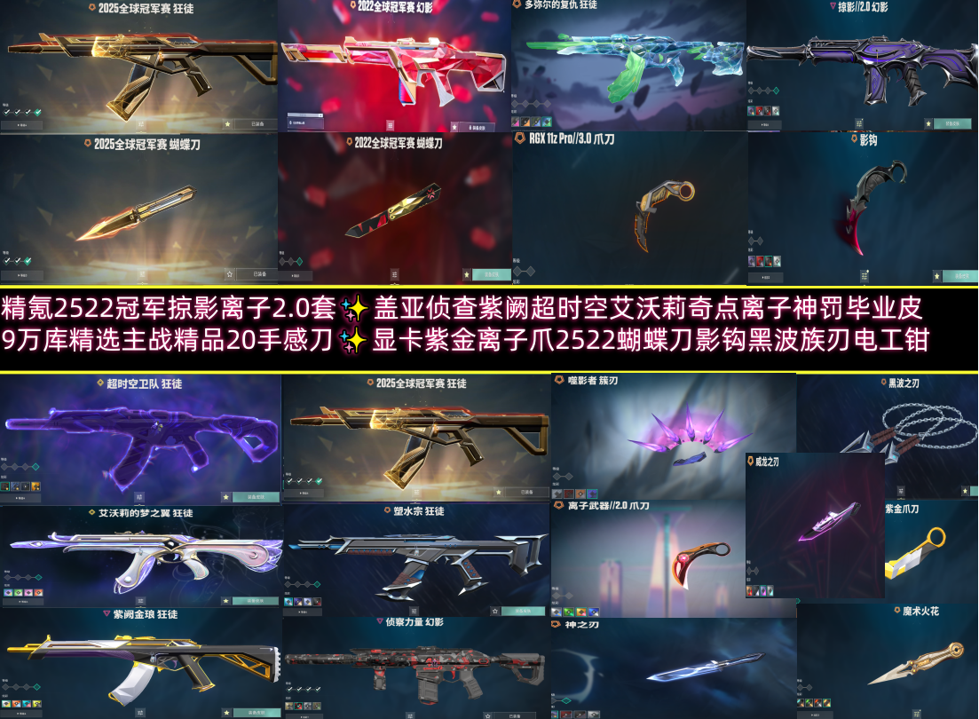 精氪2522冠军掠影2套✨20刀显卡紫金离子爪蝴蝶刀影钩黑波族刃电工钳✨盖亚侦查紫阙塑水超时空艾沃莉