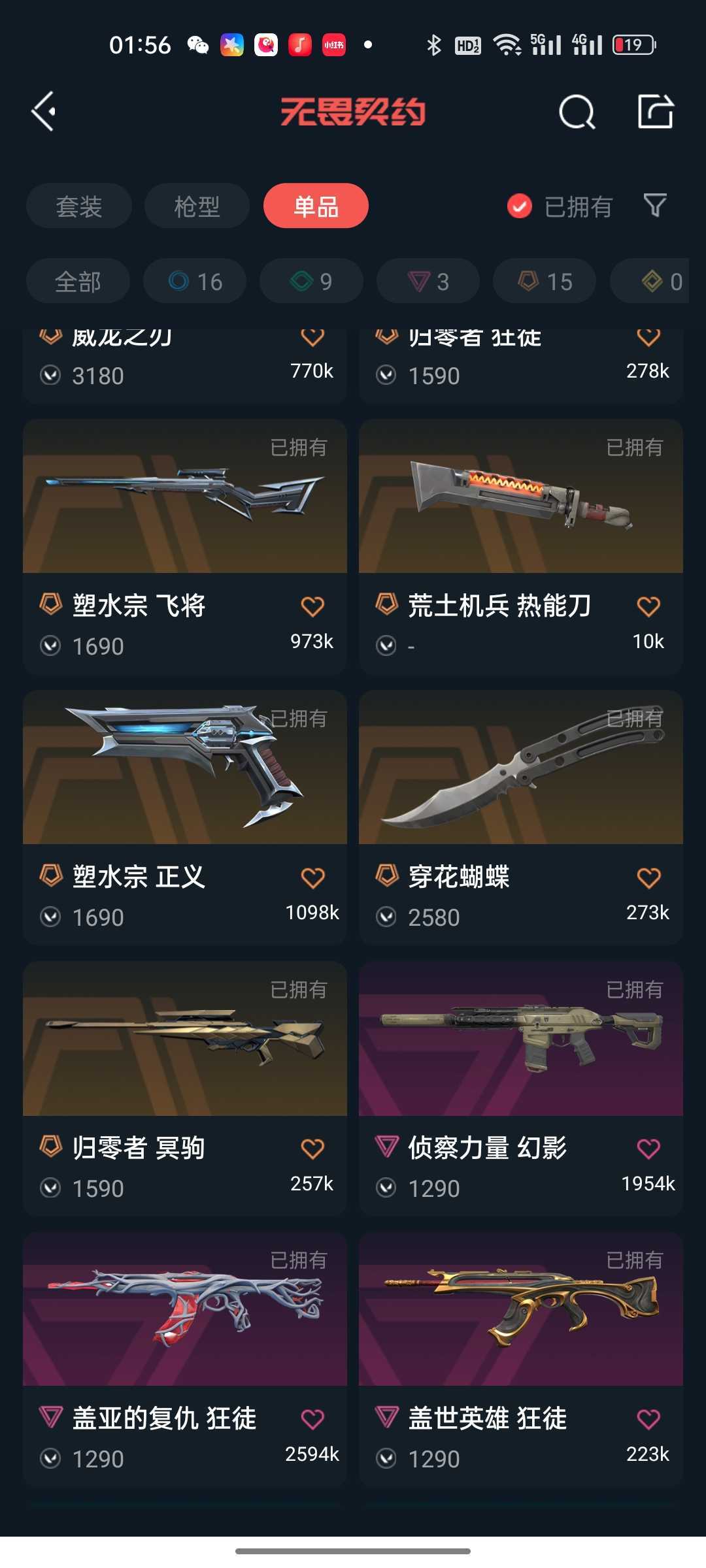 5w库存炸鱼号✨西部未来套装✨VCT2025爪刀✨塑水宗正义飞将✨盖亚ak✨侦查力量幻影